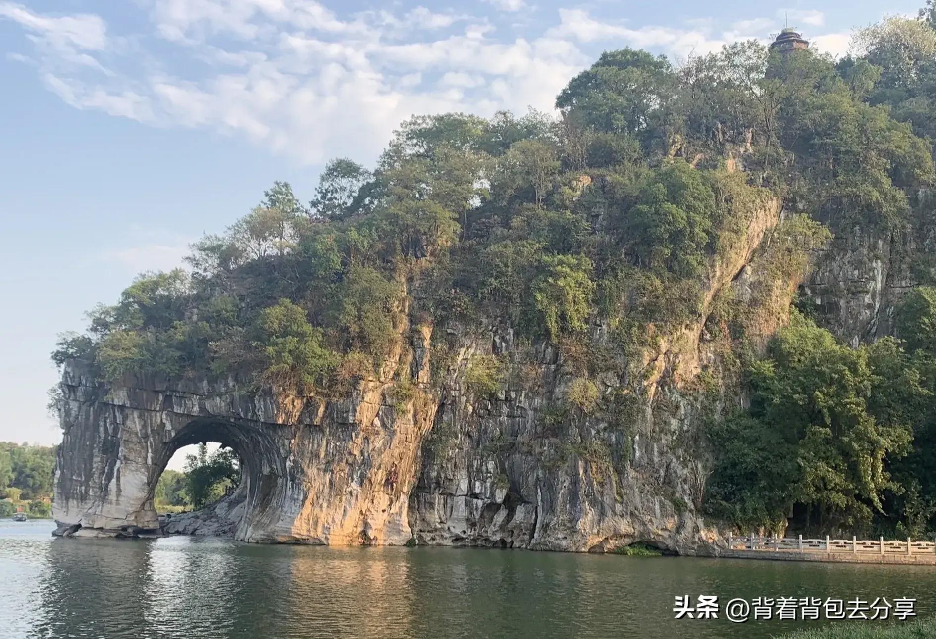 象山公園,位於廣西壯族自治區桂林市象山區民主路,現爲國家5A級旅遊景點,因酷似一頭臨江飲水的大象而得名,其獨特的山形和悠久的歷史,成爲了桂林城徽標誌,是一處集山青水秀,洞奇石美的自然景觀,景區主要以象鼻山爲中心,涵蓋了象山水月-愛情島-普賢塔-雲峯寺-三花酒窖等景點,在象鼻與象身之間的水月洞內,留存着衆多摩崖石刻,有唐代詩人韓愈,自古讚美象山的美譽