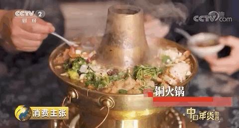 羊肉、羊雜、羊湯在銅鍋裏煮,