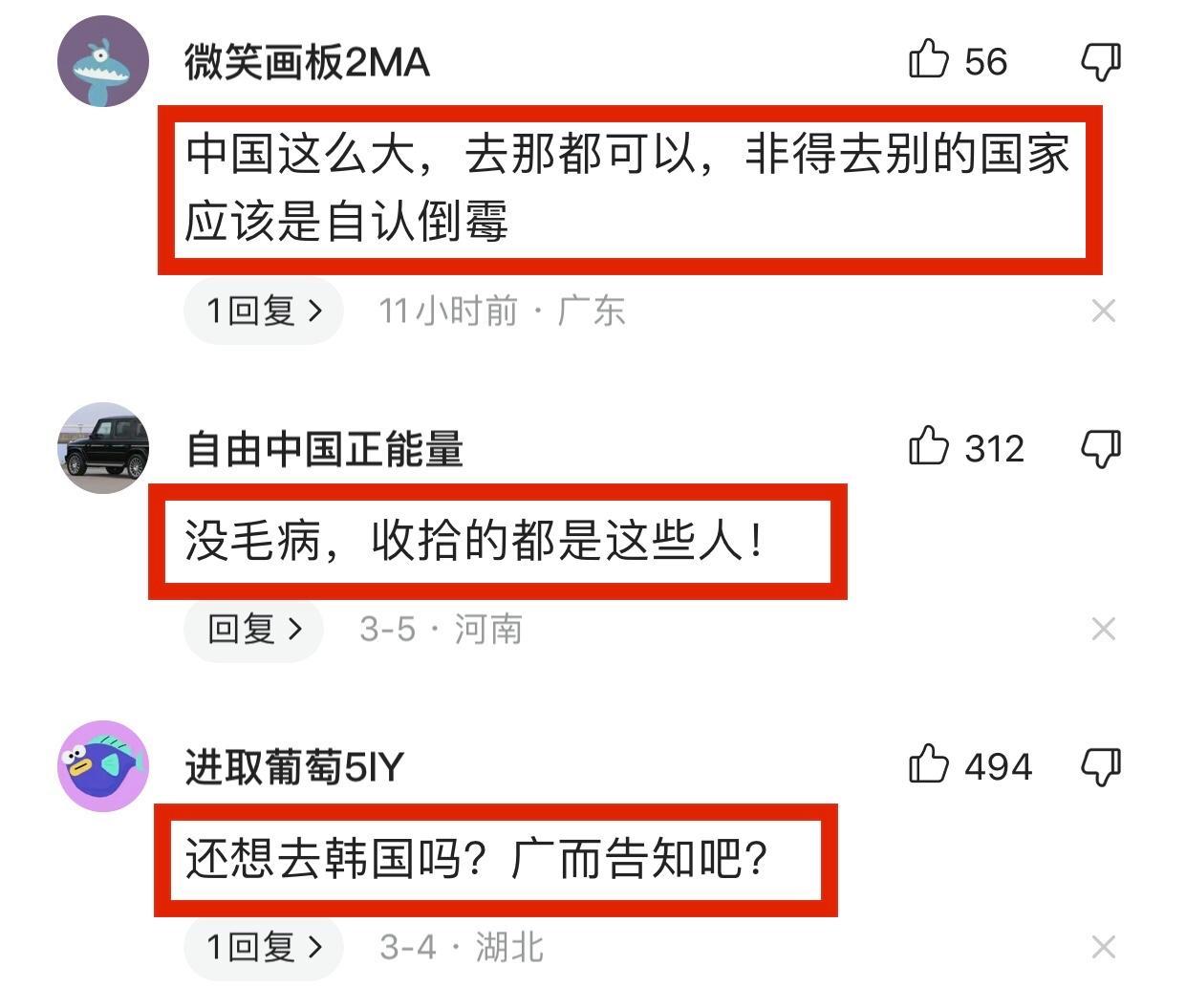 熱情鬧上熱搜,有兩排網友觀點各不相同,A派網友認爲這幫人是活該,爲什麼要去韓國旅遊,對他們遭遇落井下石、抵制去外面旅遊,看看A派網友觀點: