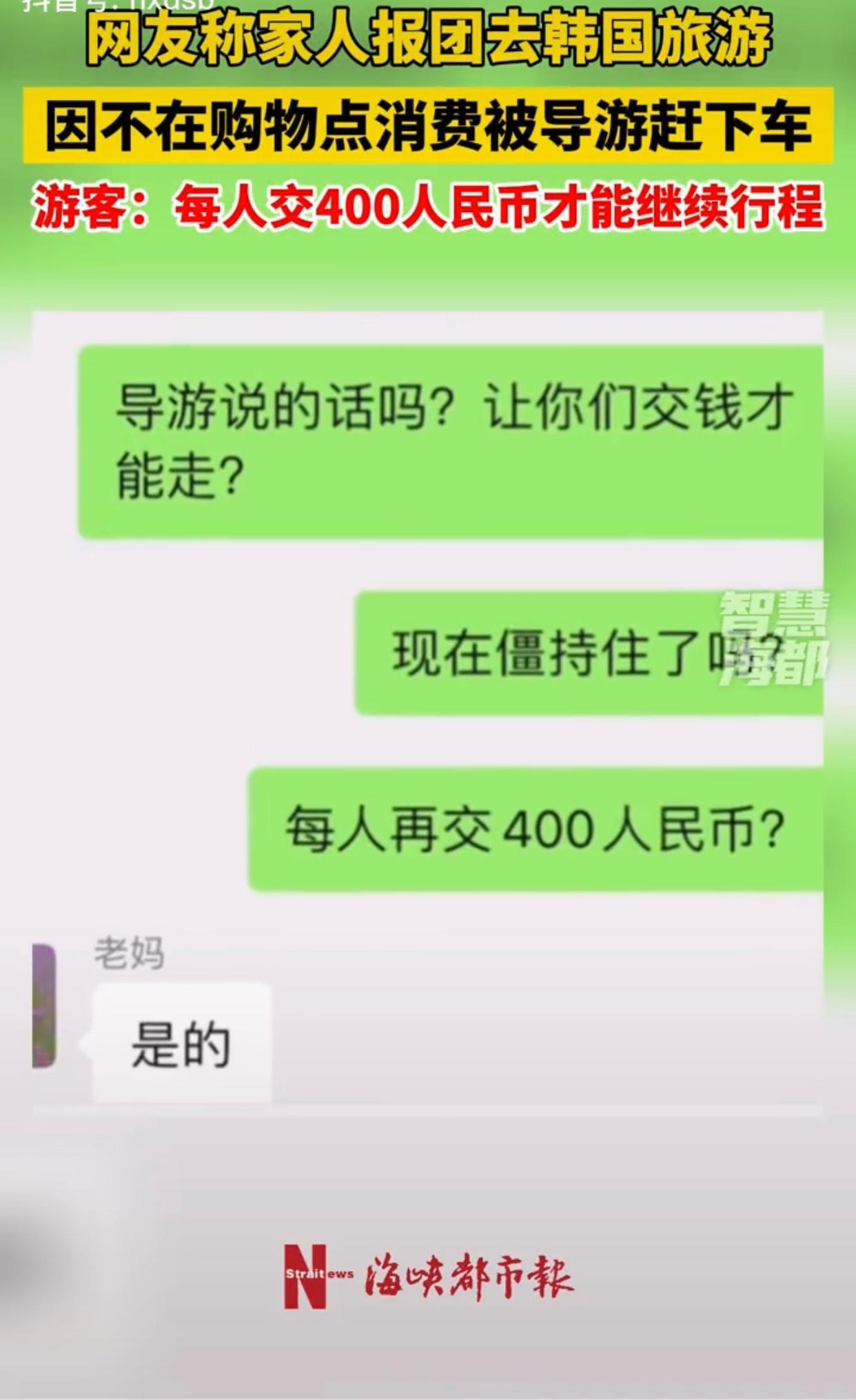 40位遊客跟團遊韓國首爾,不購物被導遊趕下車:交400元才能離開