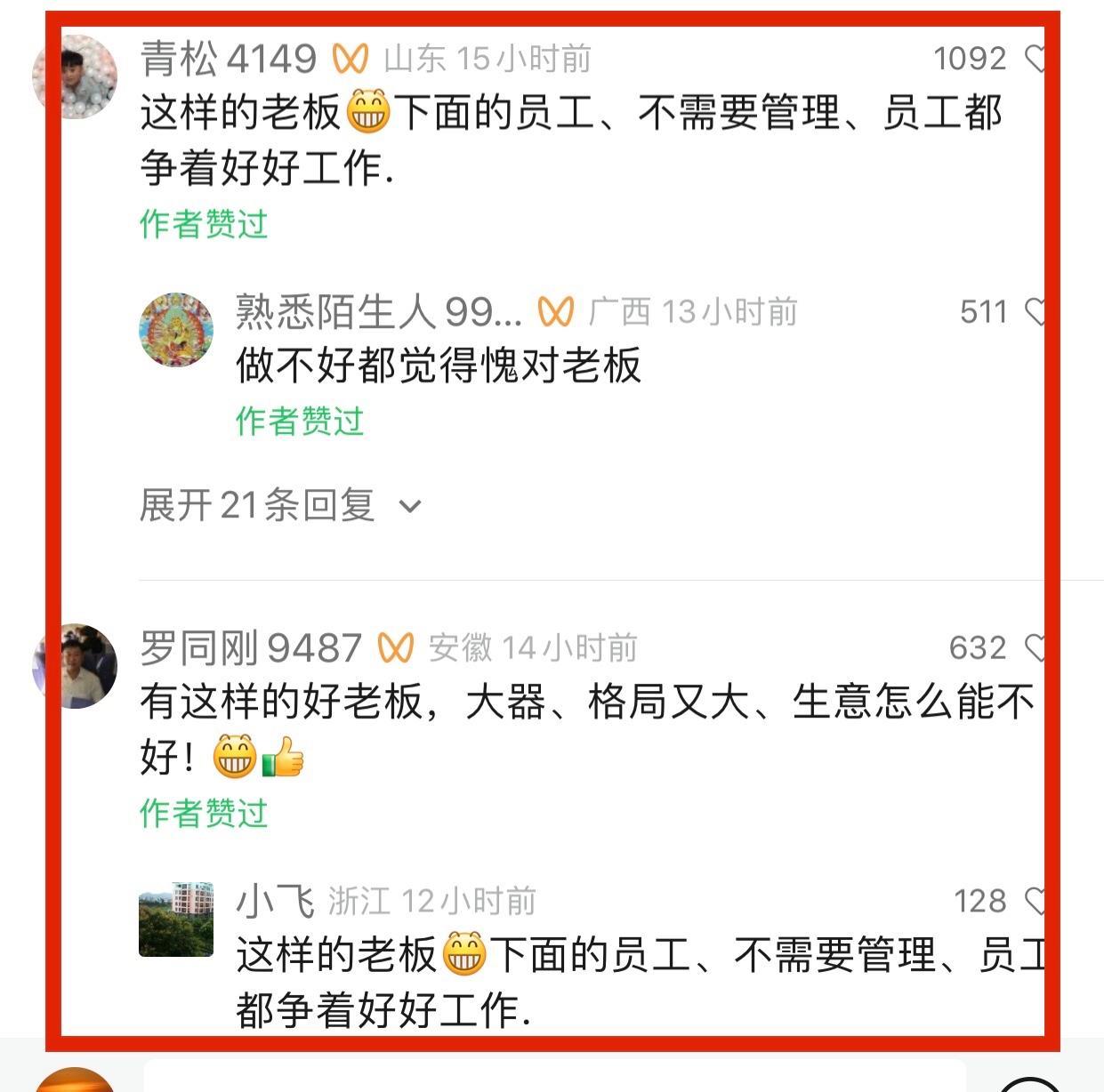 3、中國好老闆走了一個,就從你開始給中國老闆們樹立榜樣,希望中國越來越多這樣的老闆。