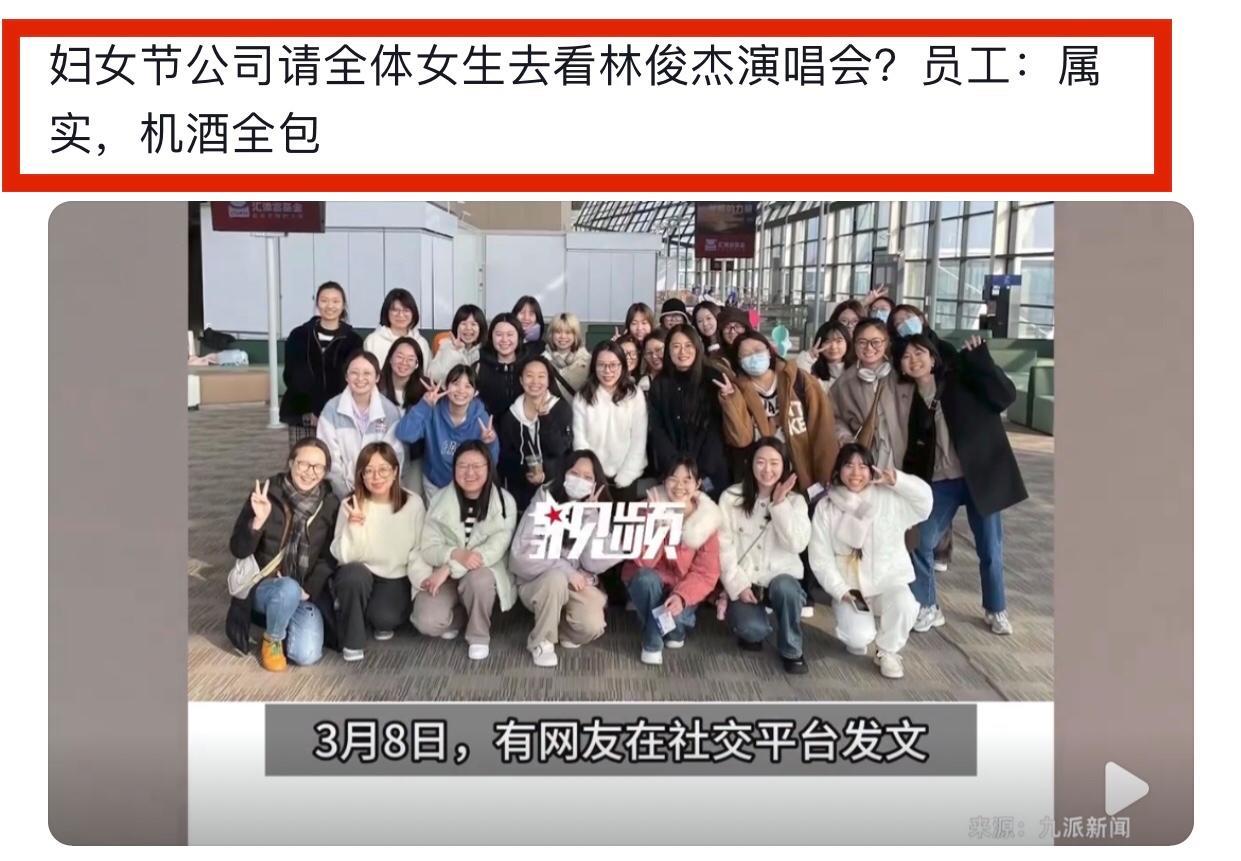 (三)、全體女員工看演唱會,熱搜榜有一家公司,3月8日婦女節當天請公司所有女員工看林俊杰成都演唱會,還拍了合影照,這家公司安排是很浪漫也符合女神們心。