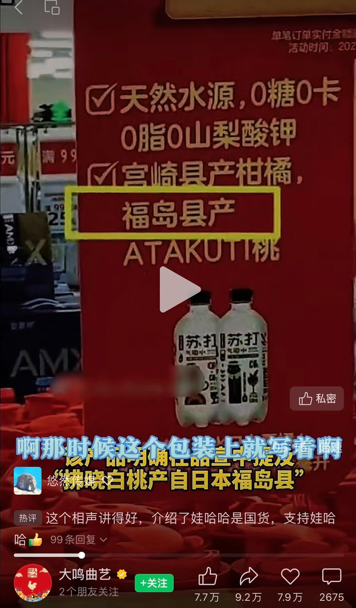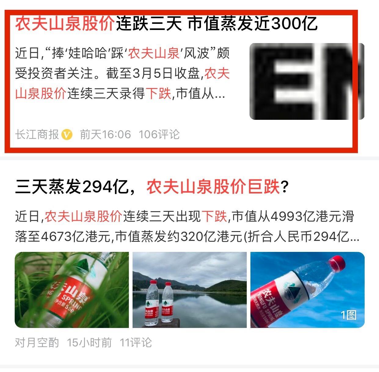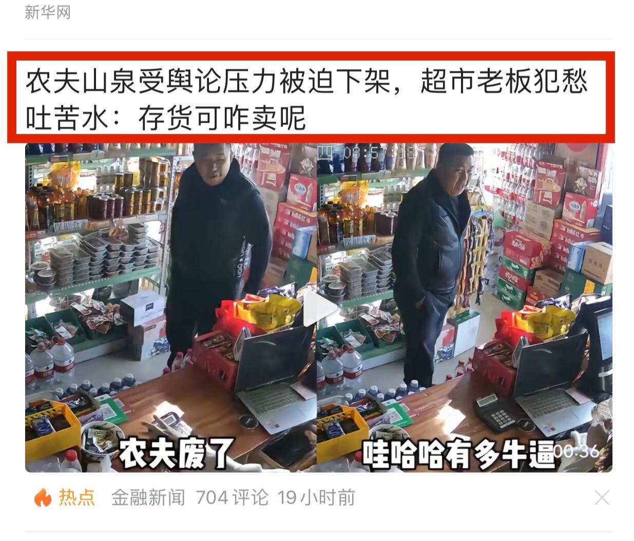 媒體報道,被網友怒批抵制的農夫山泉,一個是指責農夫山泉民族品牌背道而馳,哇哈哈股價連續三天跌停,網友說:哇哈哈纔是真正民族品牌,不上市,不割韭菜,致使現在目前情況就是從網上一些小賣部超市到個人言論視頻抵制農夫山泉,很多超市不得不受到網友的輿論壓力,逼迫下架農夫山泉,全力支持哇哈哈。哇哈哈賬號漲粉破400萬,各種飲料礦泉水賣斷貨,網上購買娃哈哈飲料和礦泉水需要預定發貨,西安一個小賣部隔空喊話要上架娃哈哈礦泉水飲料,如今已經安排上,娃哈哈這波潑天富貴算是贏麻了。