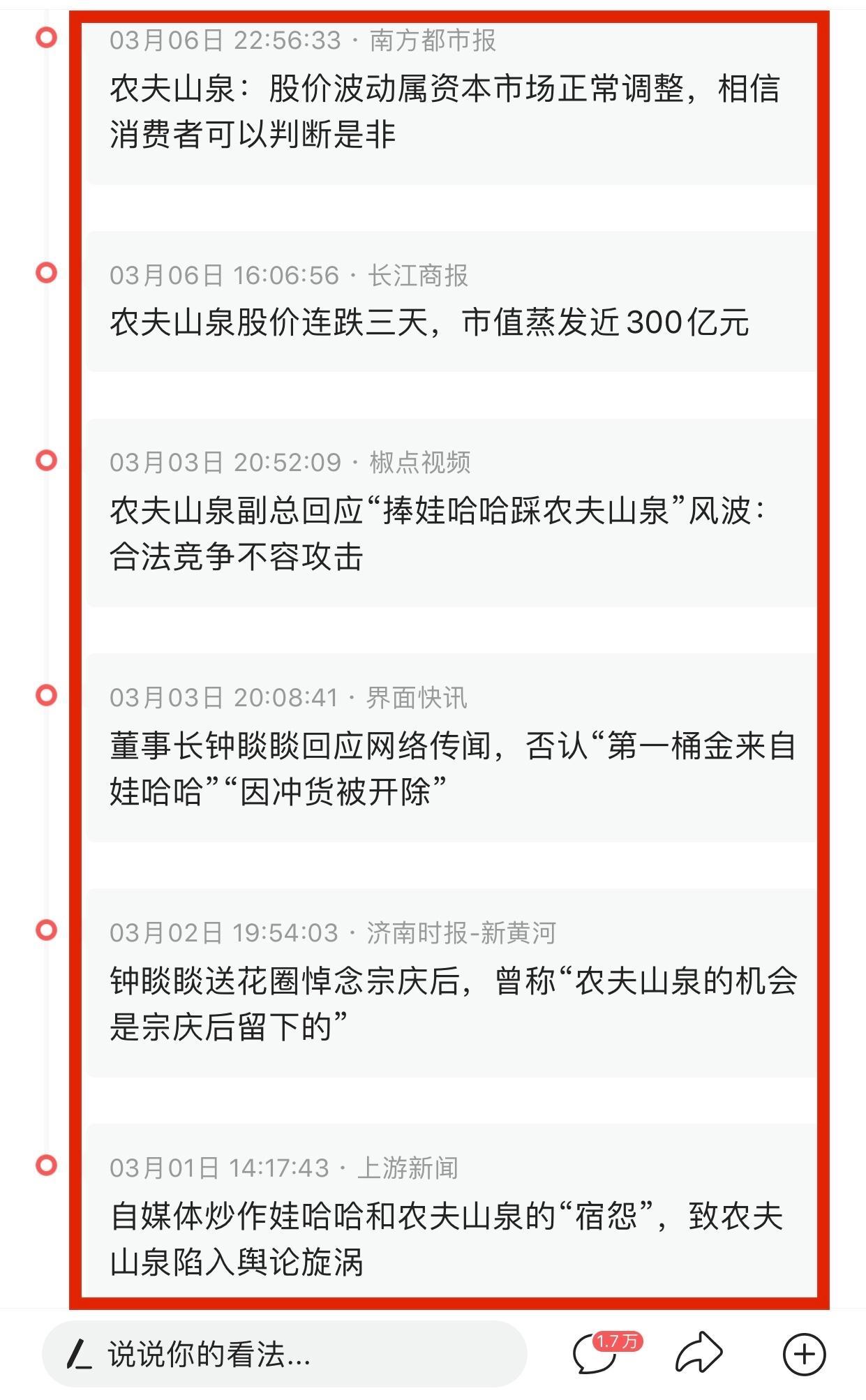 #春日生活打卡季##農夫山泉回應與宗老二三事傳聞##農夫山泉官方旗艦店5天銷量跌超90%##農夫山泉回應東方樹葉包裝##農夫山泉鍾睒睒得罪了誰?#