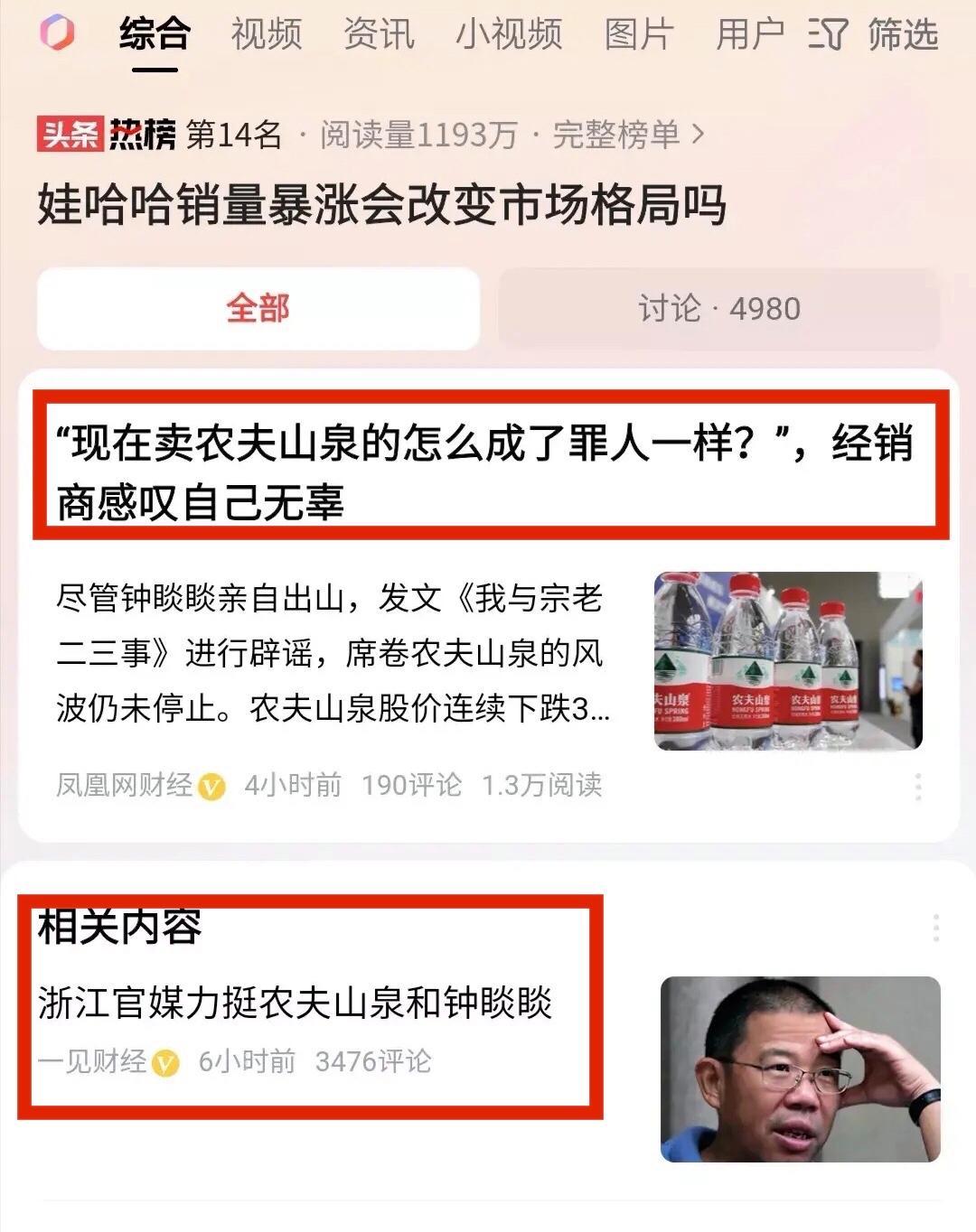 農夫山泉與娃哈哈的爭議推上了熱搜,農夫山泉股價下跌,網友抵制不買農夫山泉,以及網絡上看到一些小超市也在抵制,還有一些圖片顯示直接把農夫山泉扔到垃圾堆,網暴力量很可怕,任何人遭遇了網暴都如同被洪水猛獸一樣被吞沒一般,無法抵抗,只有招架之功沒有還手之力。