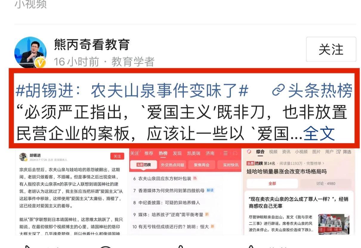 農夫山泉被扒,胡錫進說農夫山泉變味了:喜歡娃哈哈還是農夫山泉