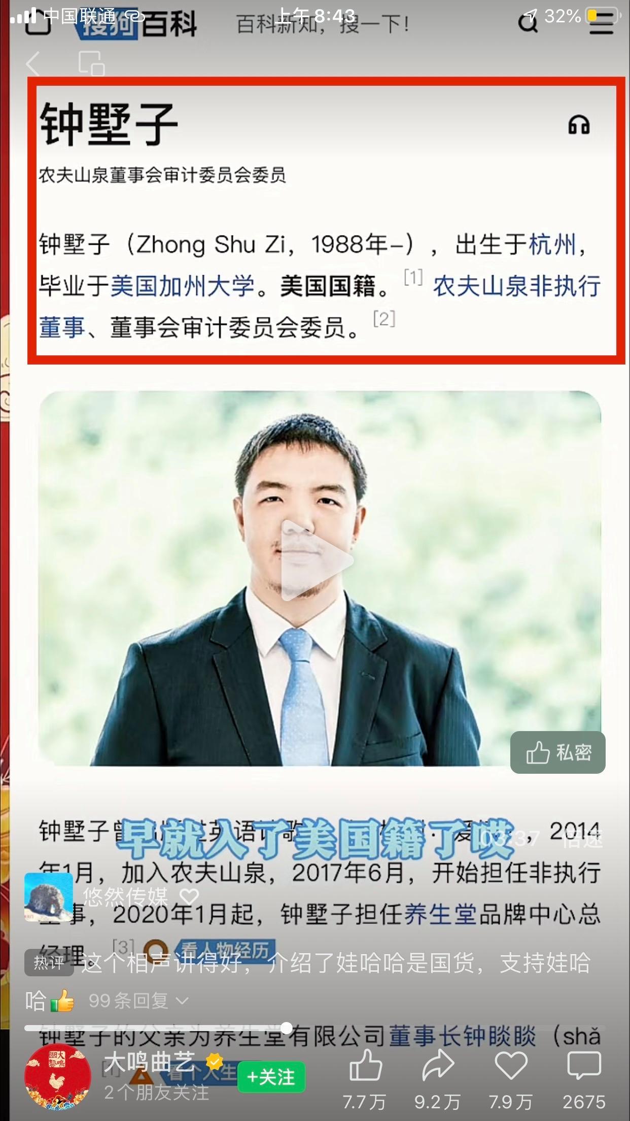 4、網友說農夫山泉董事長早前就職哇哈哈,後面出來自己單幹。