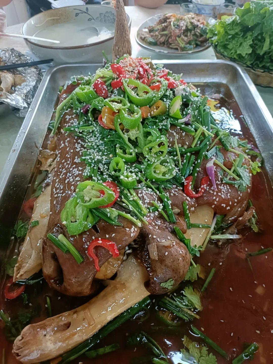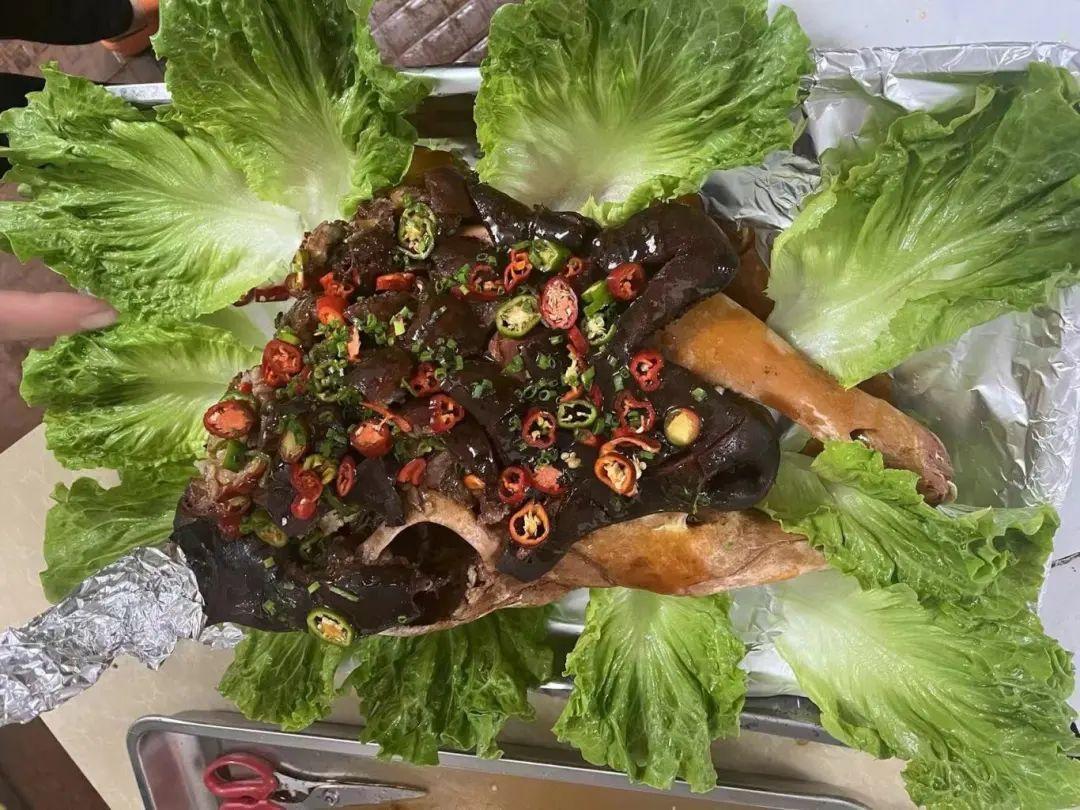 午餐品嚐牛頭宴,牛頭每日現滷,從處理牛頭到上桌整個過程下來十幾個小時,肉質鮮嫩不柴,牛皮膠質重,除了直接喫,喫牛頭也有講究,還可以用生菜包着喫。