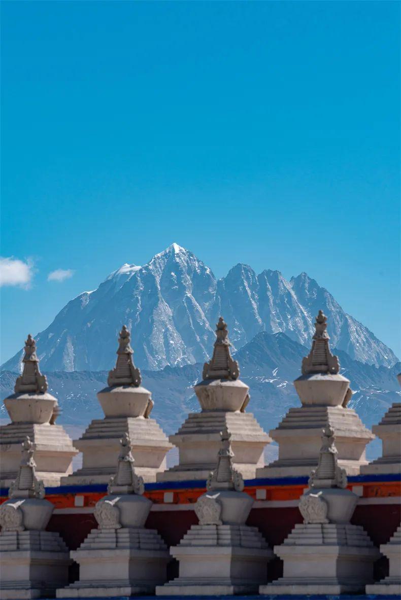 遠處就能看見終年積雪的雅拉神山,是中國藏區四大神山之一,神山主峯海拔5820米,銀裝素裹,與金碧輝煌的塔公寺遙相襯托。