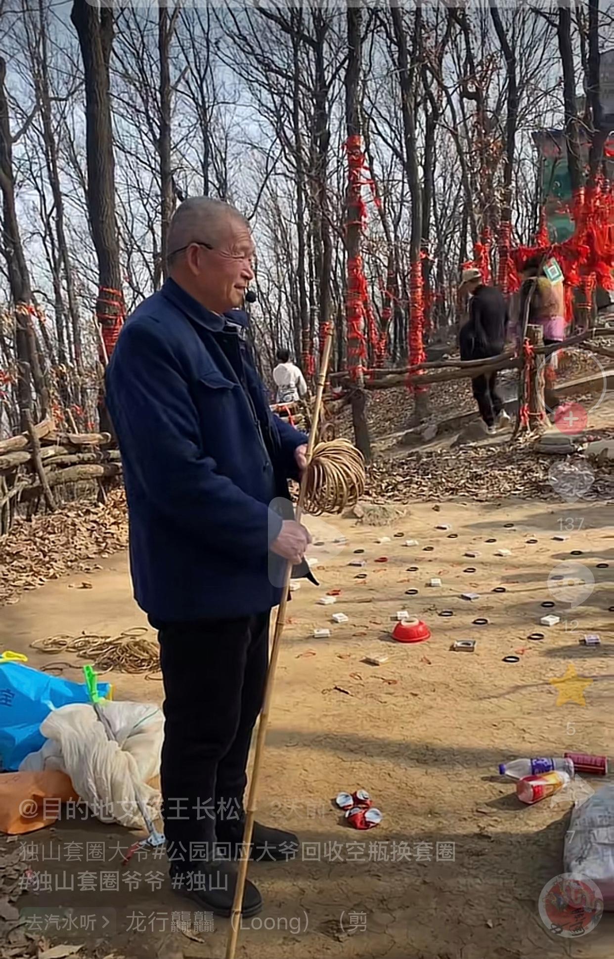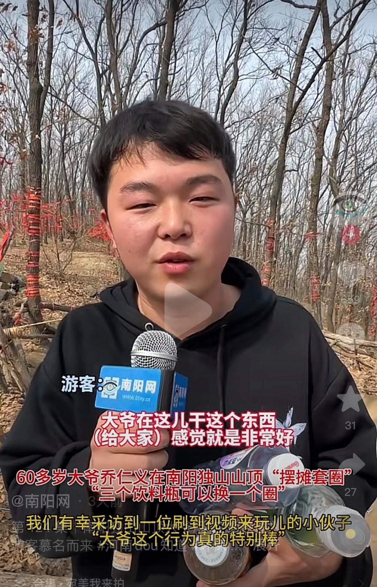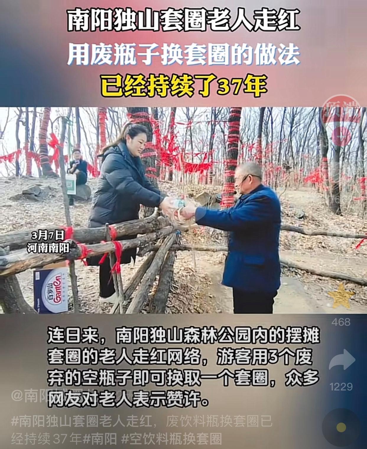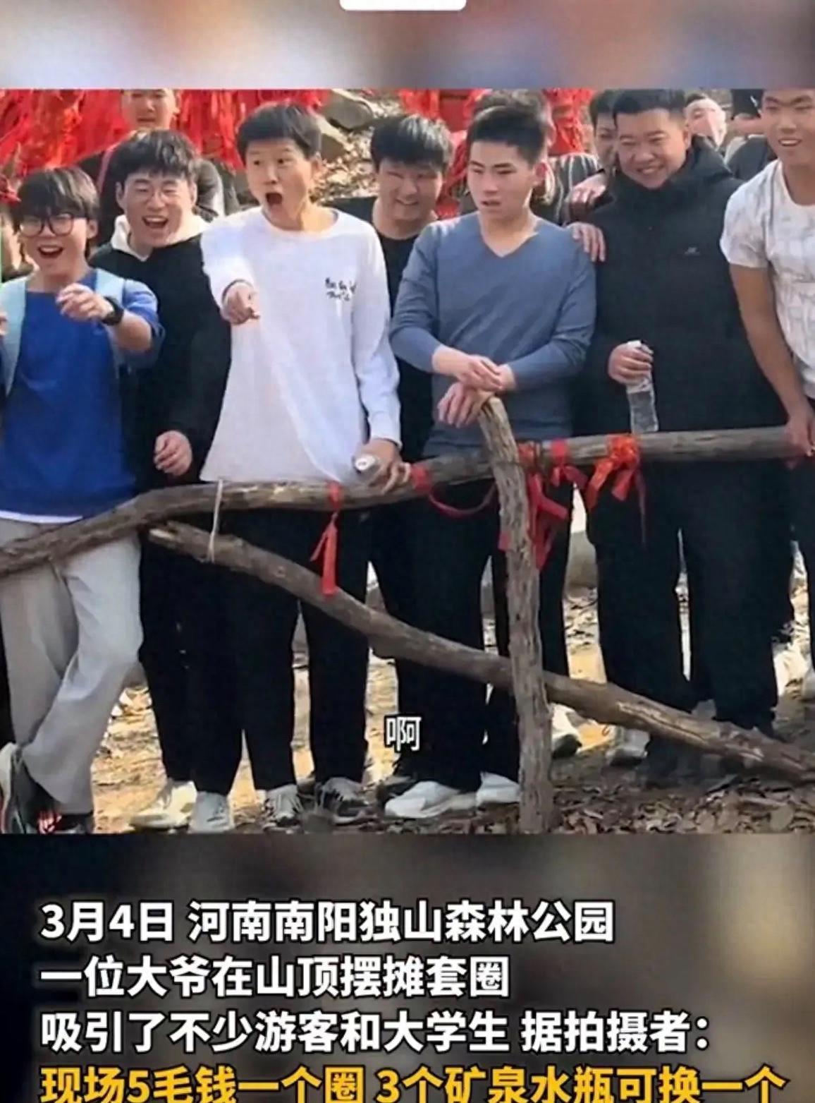 河南南陽獨山景區,大爺擺攤套圈37年:智慧出招讓大學生撿瓶子