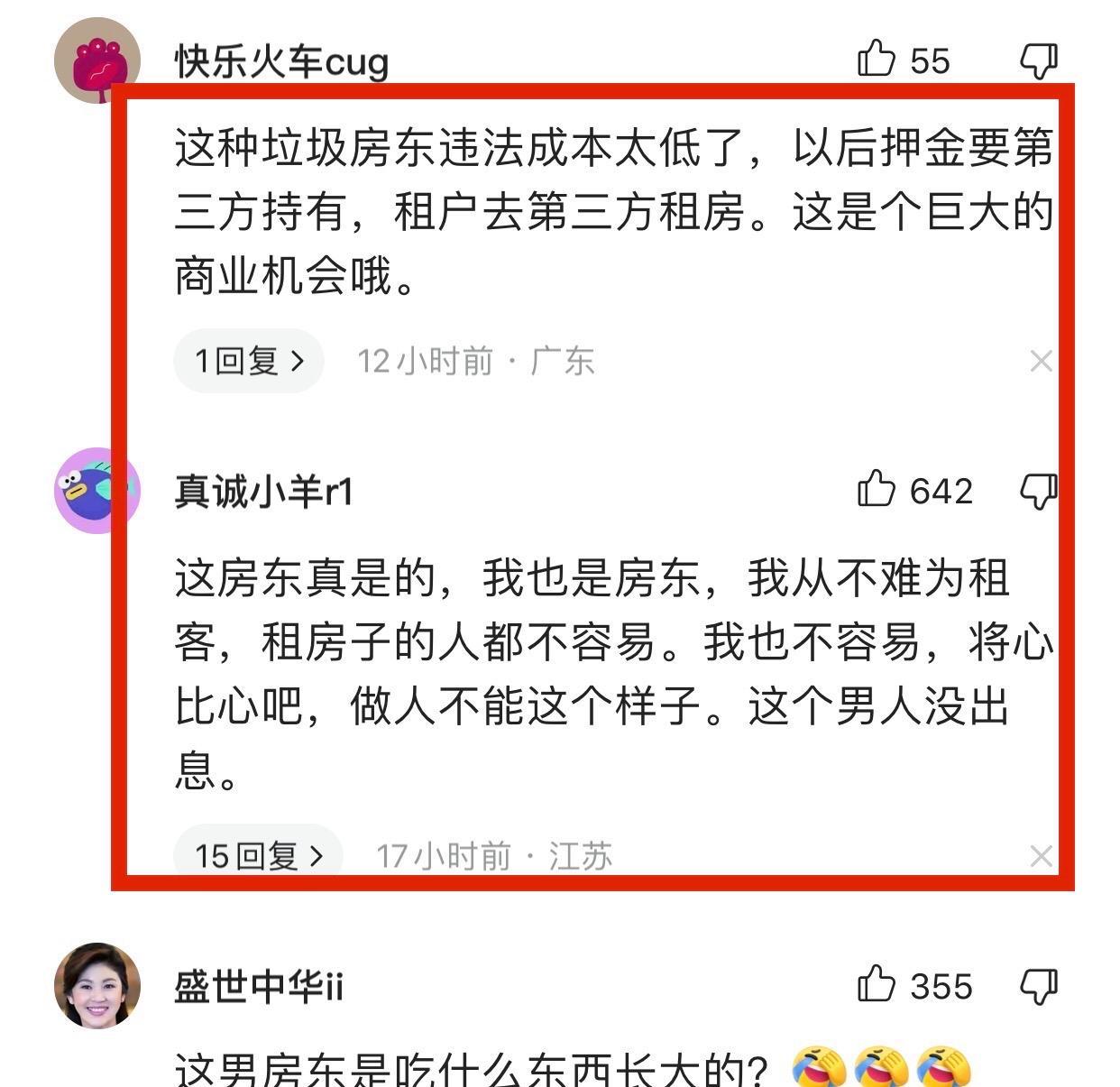 4、這房東真是的,我也是房東,我從不難爲租客,租房子的人都不容易。我也不容易,將心比心吧,做人不能這個樣子。這個男人沒出息。