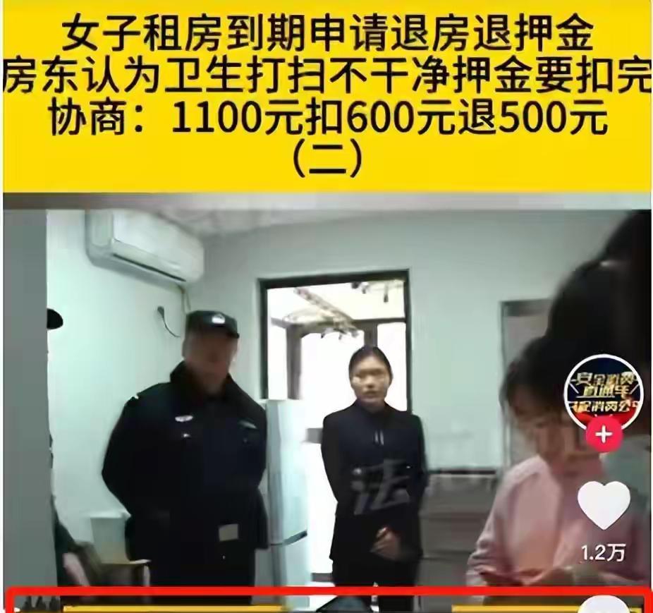 一共有兩段視頻衝上熱搜,視頻中出現的人物都有誰(租房客女子、房東母子二人,兩名警察叔叔、一名女律師),女子租房9個月,退房時候,房東按照雙方給簽訂的租房合同,要求租客退房時把房間打掃一塵不染才能退還押金。
