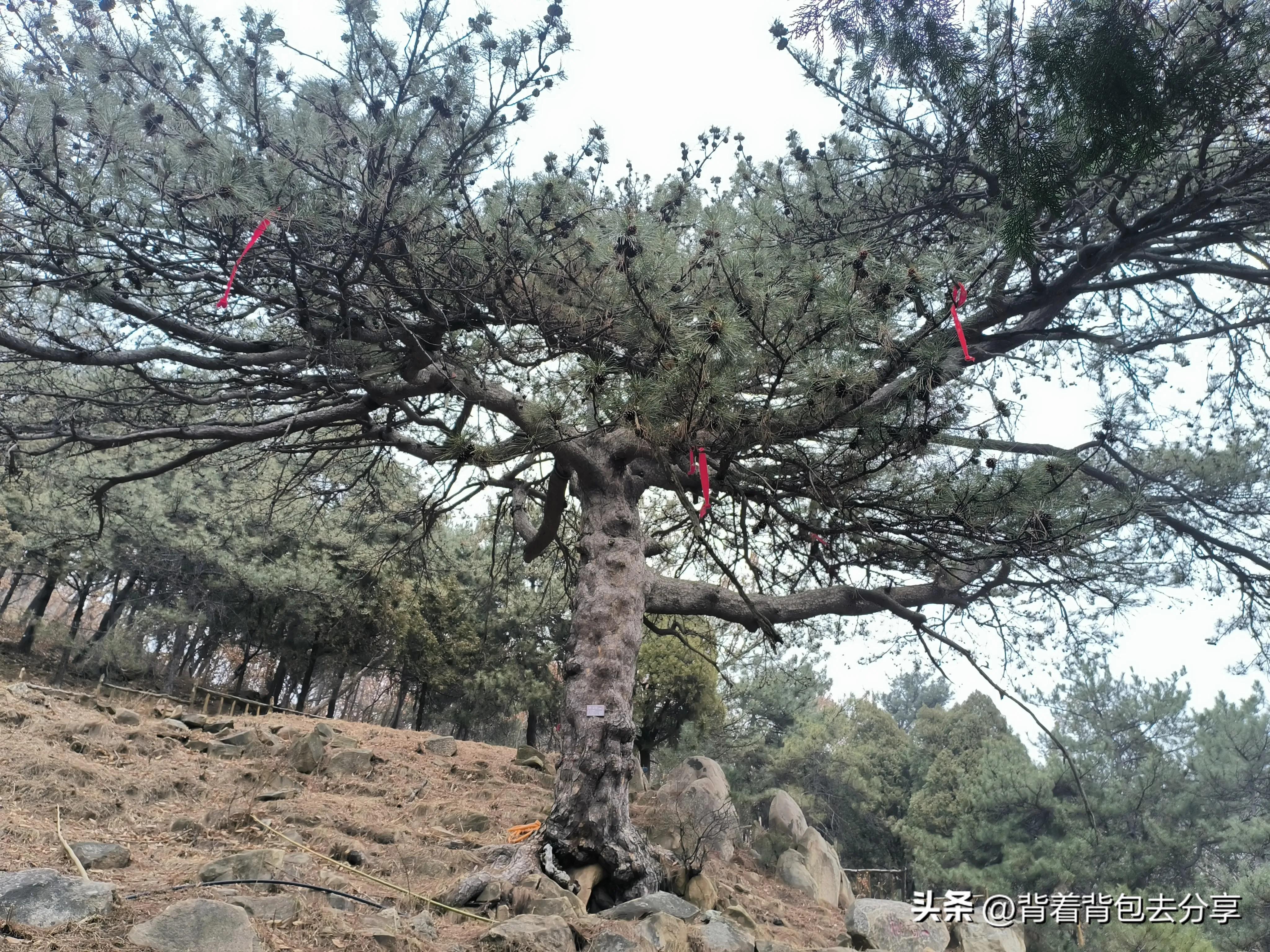 主殿後方是一畝松,該樹是泰山衆多古松中,遮蔭面積最大的一株,樹齡達800餘年,樹高12.5米, 胸圍3米,冠幅26.8米X33.5米,約合1.3畝,故名一畝松,樹幹粗壯敦實,凸凹起伏,古老蒼勁,也是實屬罕見了,看過一畝松後,原路下山,在玉泉寺,還有幾處景觀,值得前往,有西佛腳-金蟾拜佛-臥虎石等