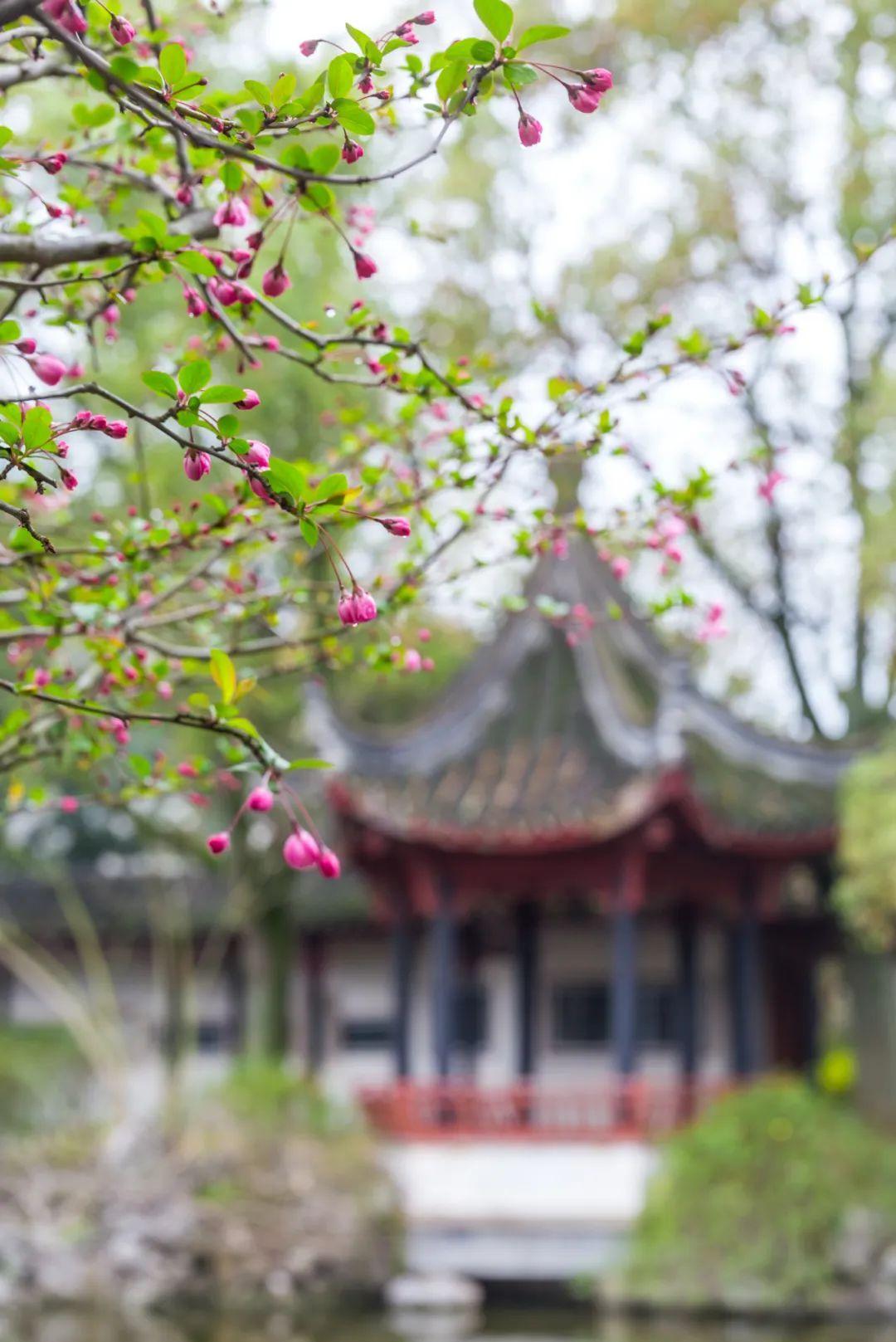 紅花點點、柳絲紛飛、白牆黛瓦…