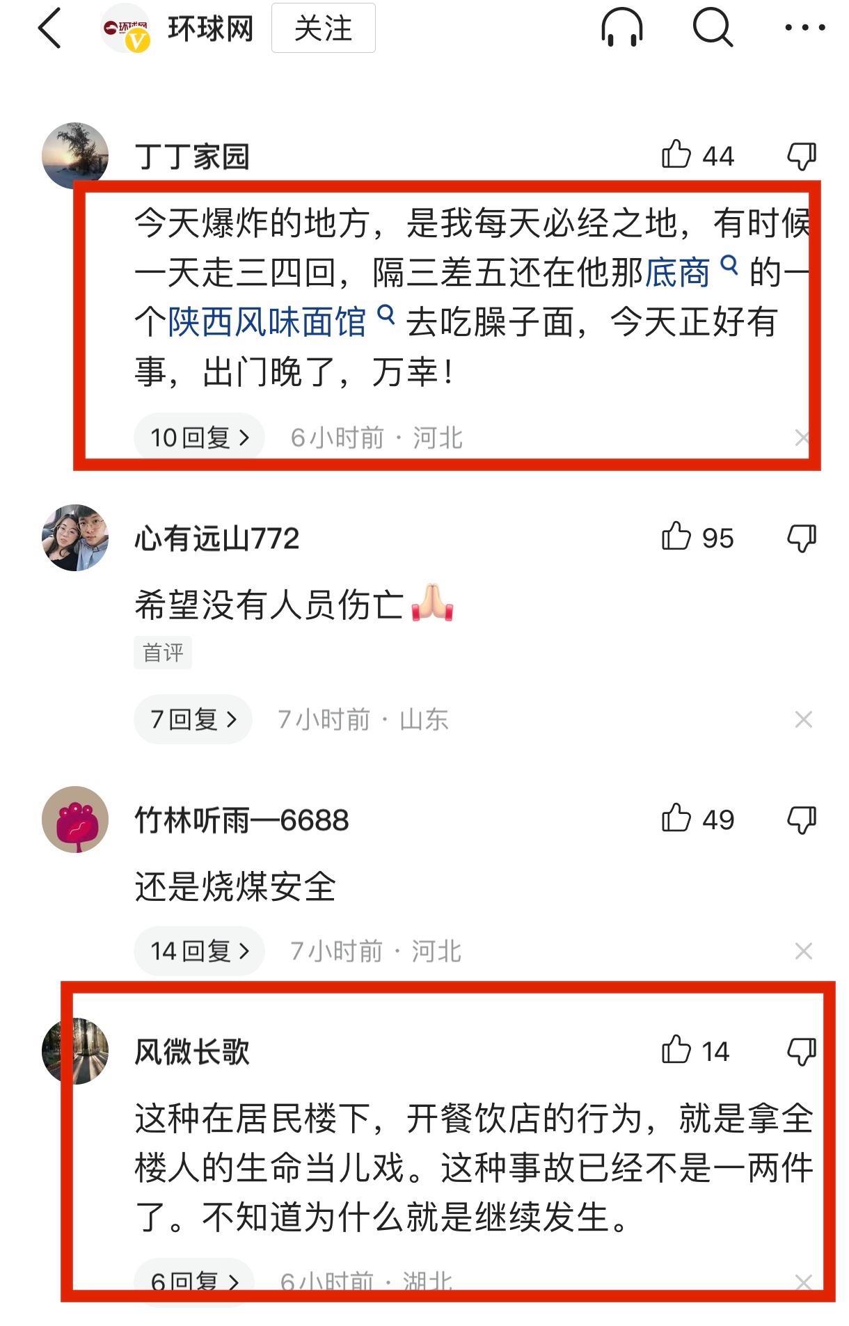 一些網友建議,根據這些年各地每年餐館爆炸發生災難,住在開餐館的樓上都膽戰心驚,一些網友說建議買房前看看,凡是樓下有大量開餐館的鋪面,不建議買餐館樓上的房子居住,不怕一萬就怕萬一發生煤氣罐爆炸,擔心不無道理,但是消防安全要加強,凡是用到液化氣炒菜餐館,一定要配備專業消防救援,對員工要具備專業消防知識培養,正規操作液化氣,寧夏那個液化氣爆炸燒烤攤,最後新聞公佈調查結果視頻還原1分30秒視頻,當時發生液化氣泄漏時候,員工該第一時間疏散用餐遊客,結果他們幾個廚師是第一時間去關閉液化氣,結果沒有控制住,最後錯過了最佳疏散用餐客人和員工逃離的時間,導致傷亡慘重。