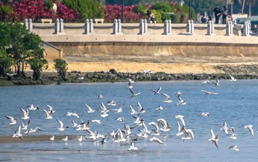 比人類更敏銳地意識到雷州半島適合避寒的是這些遠道而來的“候鳥”,每年的冬天,都會有大批從西伯利亞飛來的紅嘴鷗到這裏過冬。