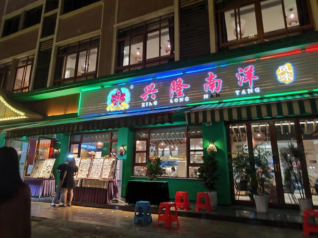 南洋風味館是來興隆必喫的一家店,它融合了多種風格的南洋美食,有金絲蝦卷、印尼炸雞塊、咖喱魚丸、斑蘭七層糕、印尼咖喱糉、祕製鳳爪、雞翅包飯等種類超過100種的糕點、小喫、特色飲品,目前已經成了萬隆的網紅店,幾乎每天都要提前預約。