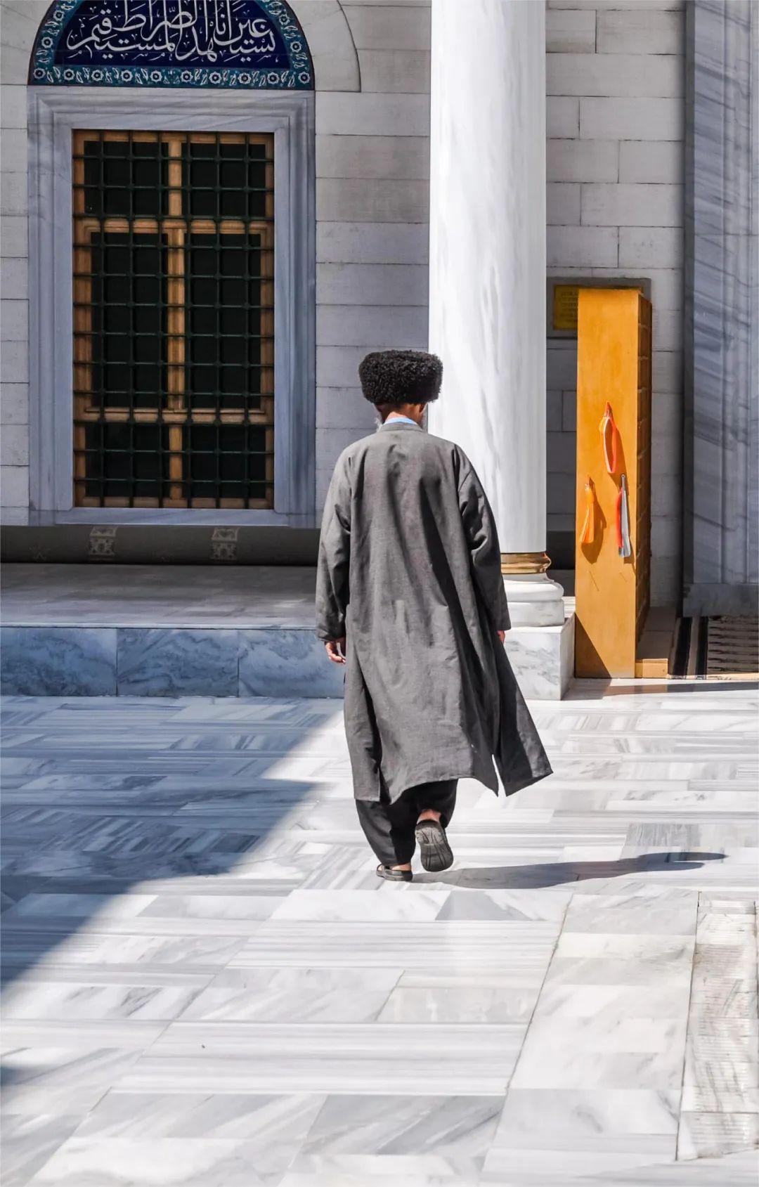 戴着頭巾、頂着無檐帽的阿富汗商販