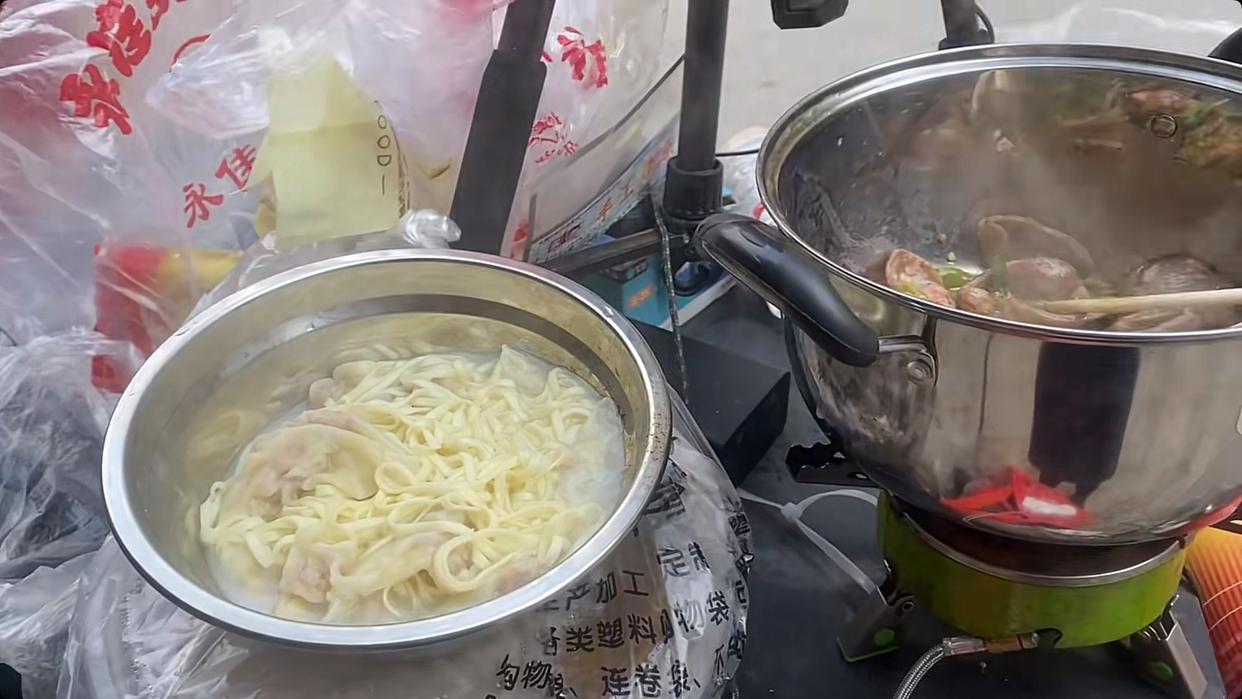 這位徒步女揹包客,推着一個小推車,上面放上了煮飯鍋碗瓢盆,直播腳架,帳篷睡袋,主要體驗沿途風光美景,各地風土民情,哪裏天黑哪裏休息,帳篷搭起來就睡,主要是自由的靈魂,一般露營地主要選擇在村莊,或者有人家地方,沒有村莊露營就繼續連夜趕路,有時候會徒步一個通宵,非常辛苦,一個月大約住三次賓館,也會給村民要點熱水洗頭什麼的。