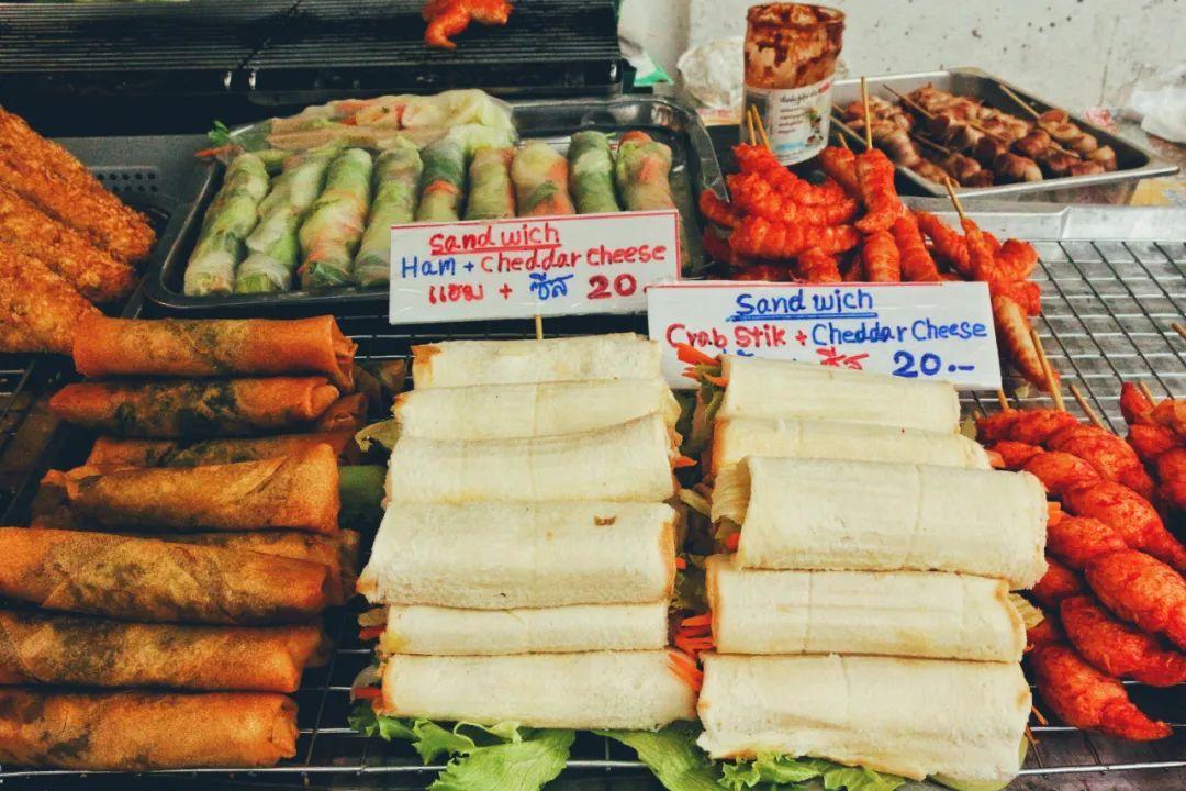 泰北香腸、壽司、泰式炒粉、烤蝦