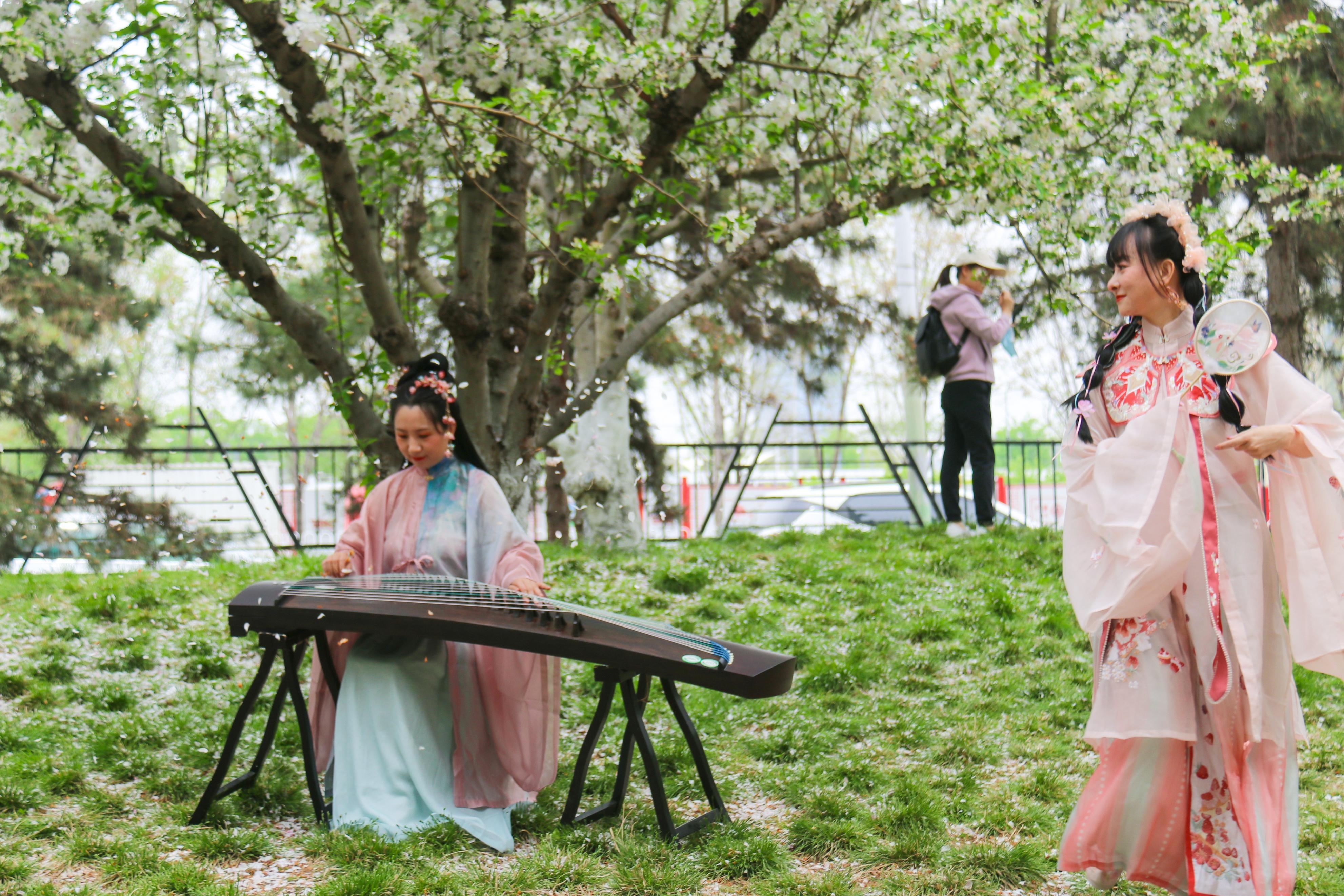 春天來了,國家植物園、頤和園、圓明園、景山公園等景區迎來不少賞花遊客,其中,很多年輕人穿着傳統服飾在紅牆邊、梅花下拍照,很有一種穿越時空的感覺。