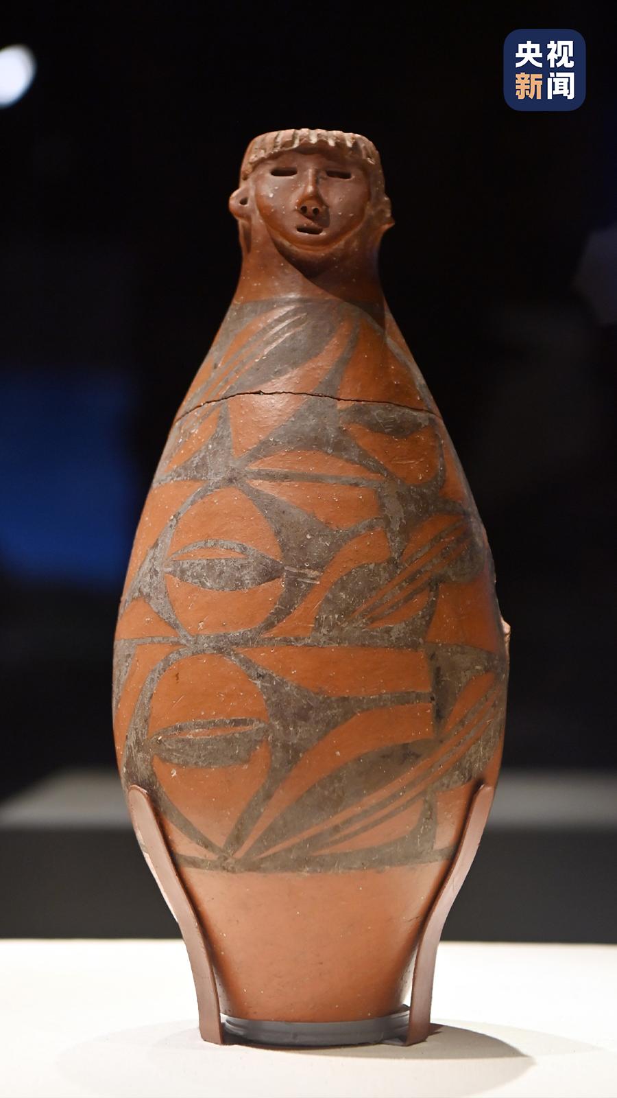 △出土於大地灣的人頭形器口彩陶瓶