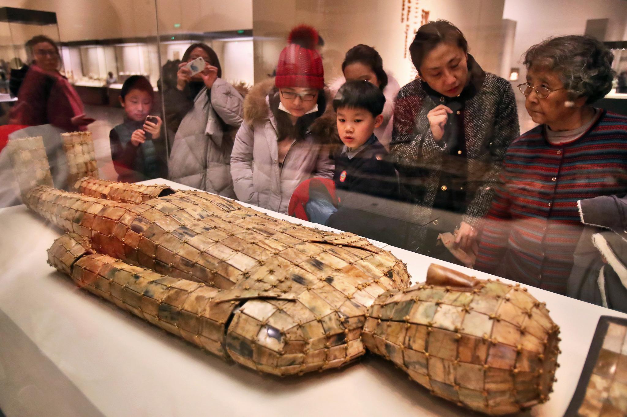 遊客在中國國家博物館“古代中國”展館內觀看“金縷玉衣”展品。