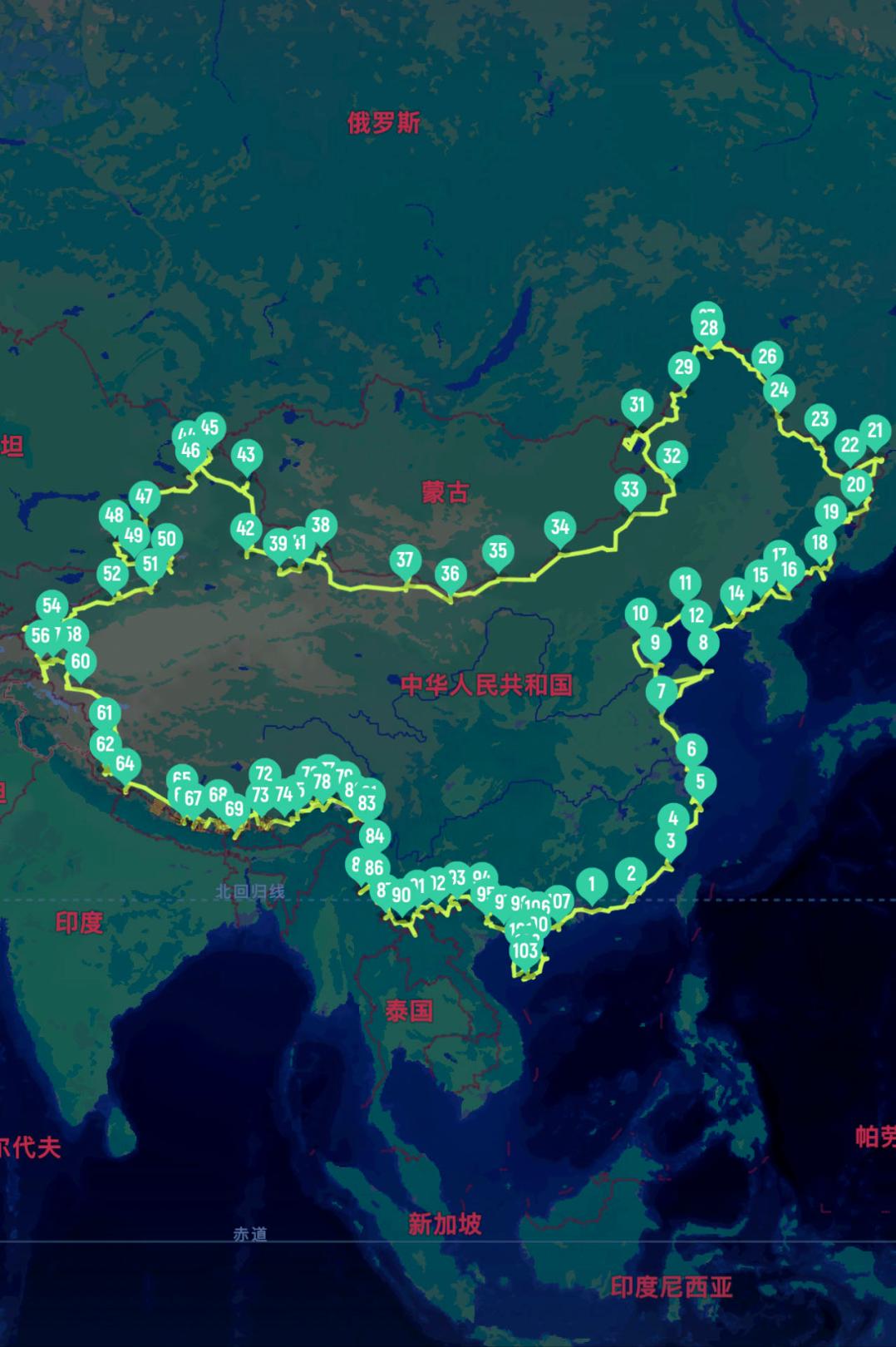 全部行程共計100天,分爲兩個版本(情懷版和夢想版),行駛里程約3000公里,共劃分爲7段,接受分段報名參加。