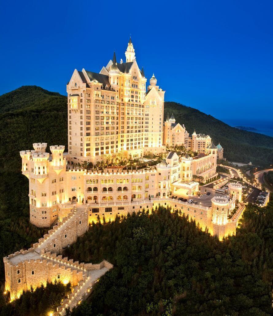 青島花石樓, 建於1930年,融合了西方多種建築風格的歐洲古堡式建築,三面臨海,氣勢恢宏,是八大關標誌性建築。