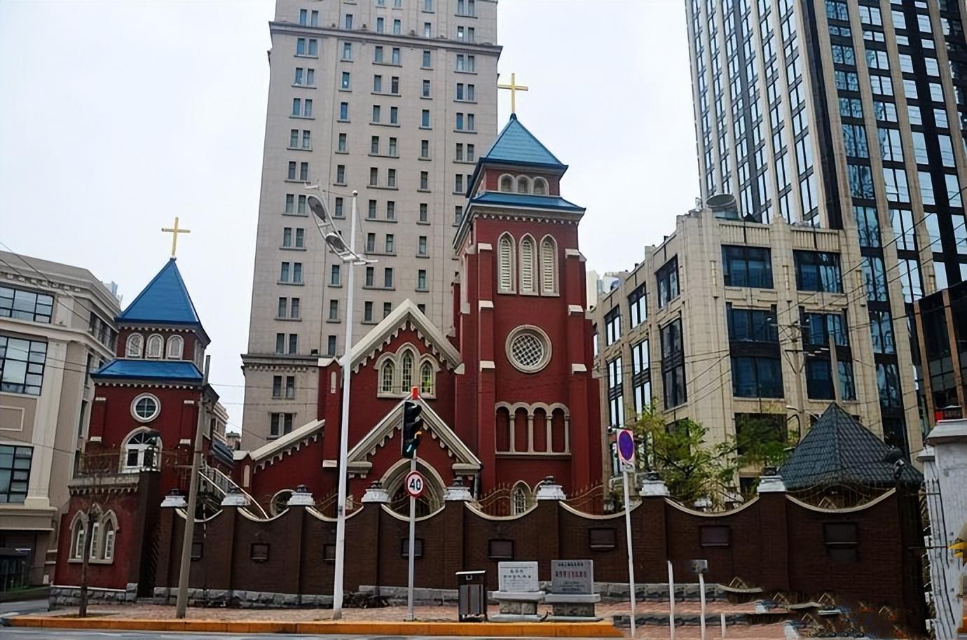青島天主教堂 ,哥德式和羅馬式建築風格,是青島最大的羅馬建築,也是中國唯一的祝聖教堂。
