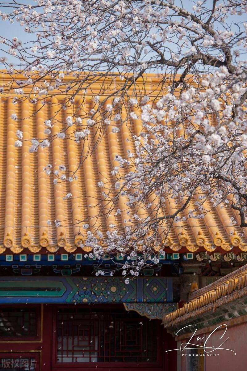 故宮的紅牆、王府的琉璃瓦、古剎的撞鐘、衚衕的青磚……在盛放 的春花下,顯得愈發莊靜、恬然。