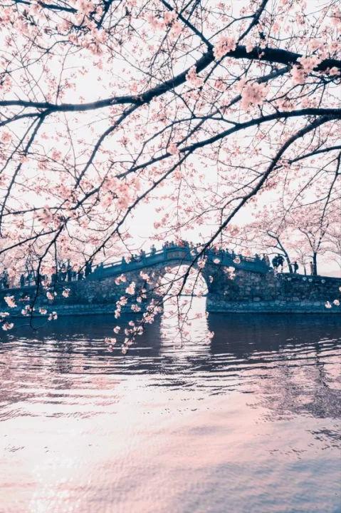 西湖的櫻花,每年如期開放,與湖、與塔、與山、與橋、與柳、與人相悅,有大氣之感,又有婉約之情,怎麼看都看不煩。