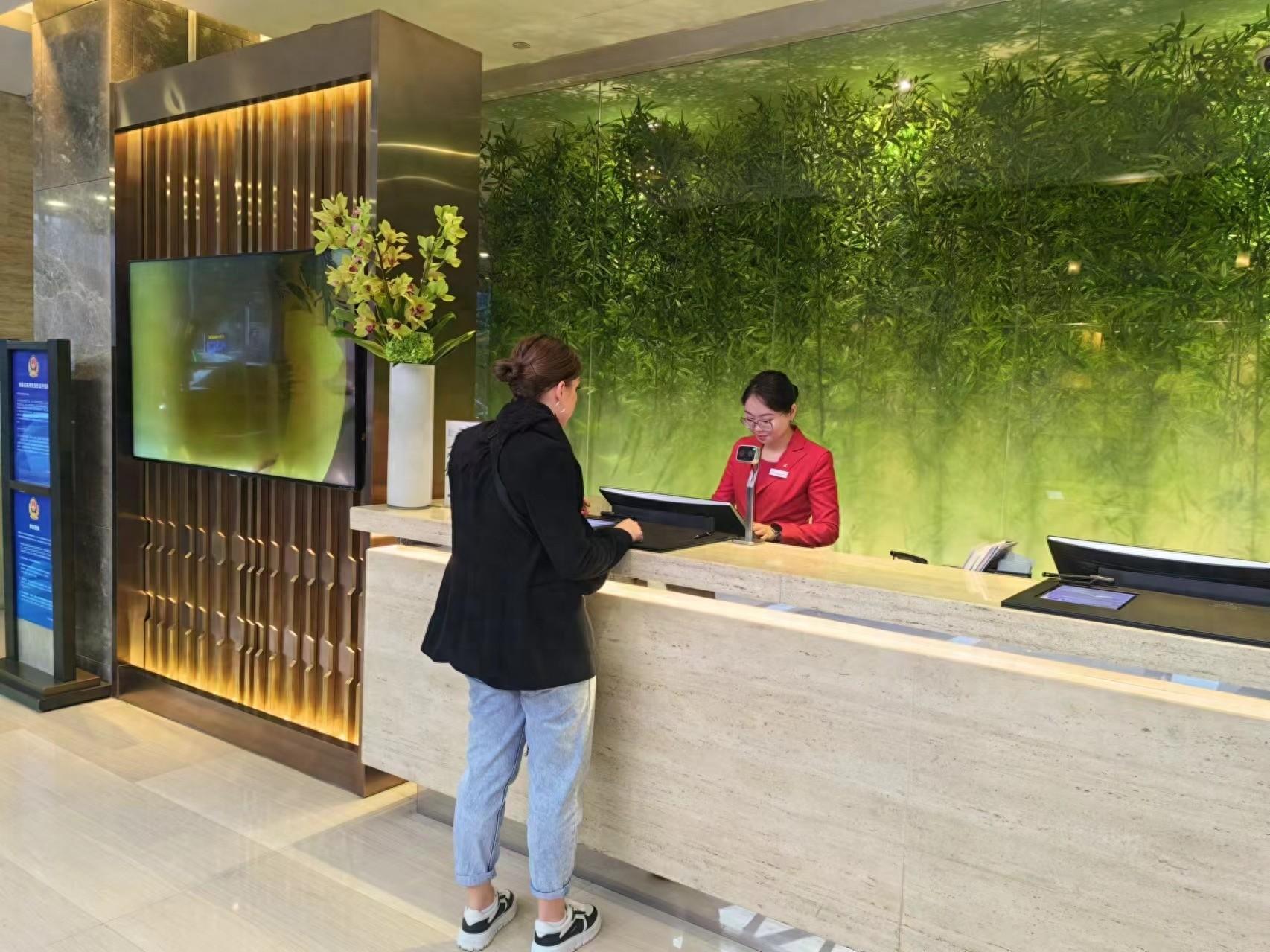遞交護照覈驗身份信息、交流相關需求、刷卡支付押金、順利拿到房卡……上週五,記者來到北京西苑飯店,看到德國遊客雷娜正在辦理入住手續。“和在其他國家一樣,整個過程非常順暢。剛剛服務人員告訴我,在酒店還可以用現金支付費用。”雷娜說。