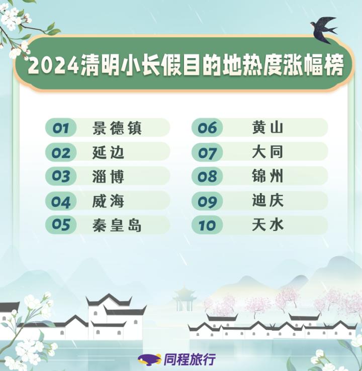 根據同程旅行的數據,截至3月20日,清明假期出遊熱度最高的旅遊目的地爲南京、北京、武漢、重慶、南昌、濟南、西安、天津、成都和長沙。其中,南京、武漢以其深厚的歷史文化底蘊和春季賞花景點吸引了大量遊客;北京作爲文化與現代娛樂相結合的旅遊勝地,憑藉北京環球度假區等熱門景點繼續保持着較高人氣。