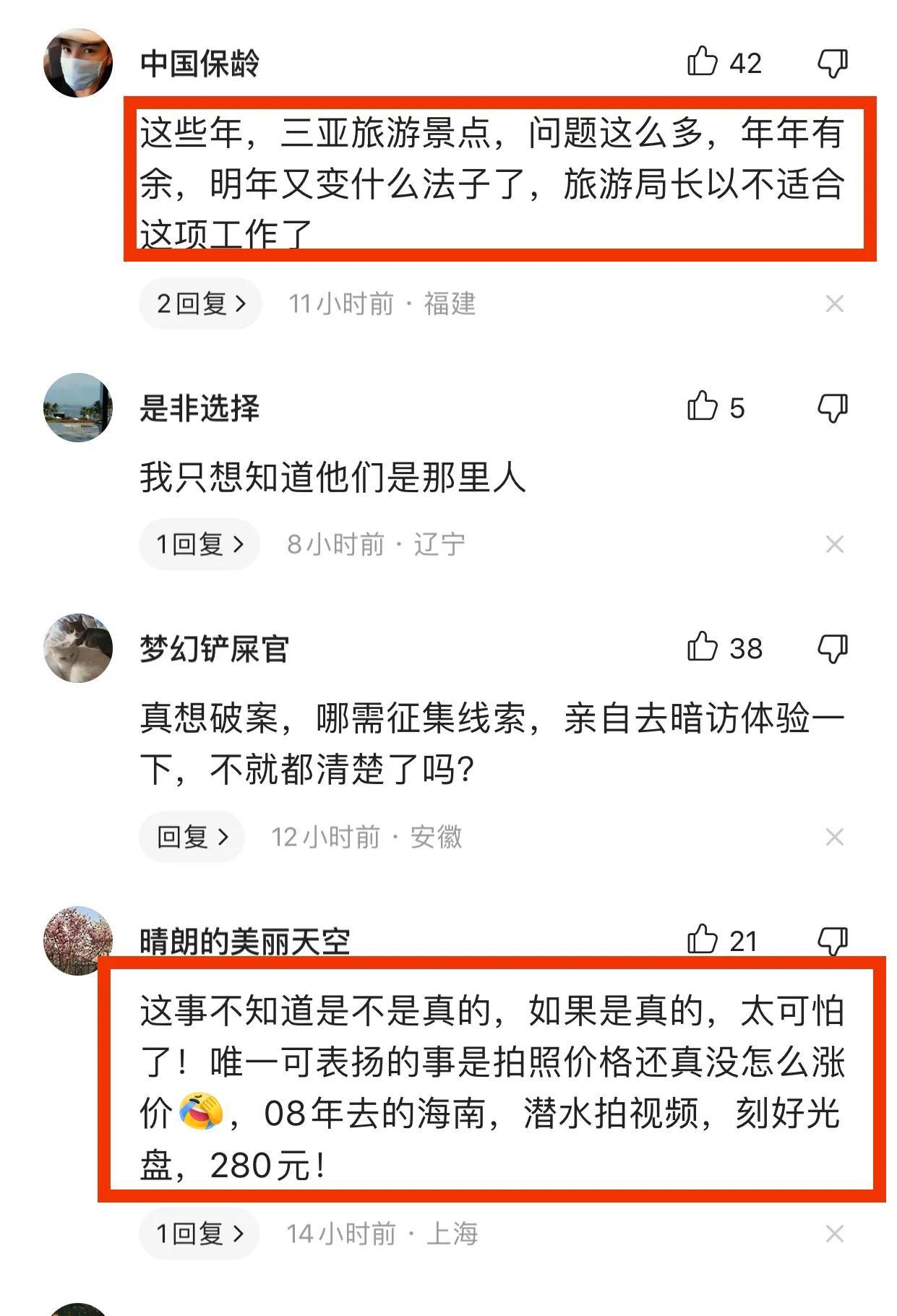 2、這些年,三亞旅遊景點,問題這麼多,年年有餘,明年又變什麼法子了,旅遊局長以不適合這項工作了。