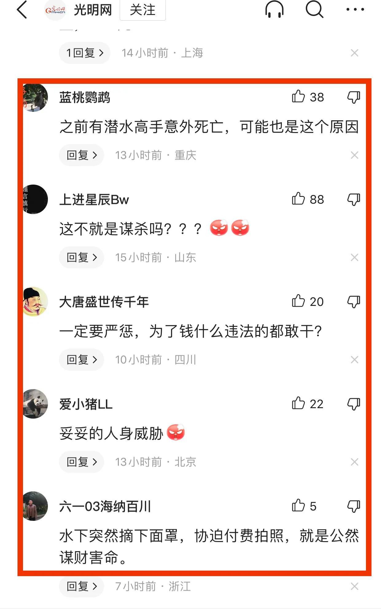 4、水下突然摘下面罩,協迫付費拍照,就是公然謀財害命。