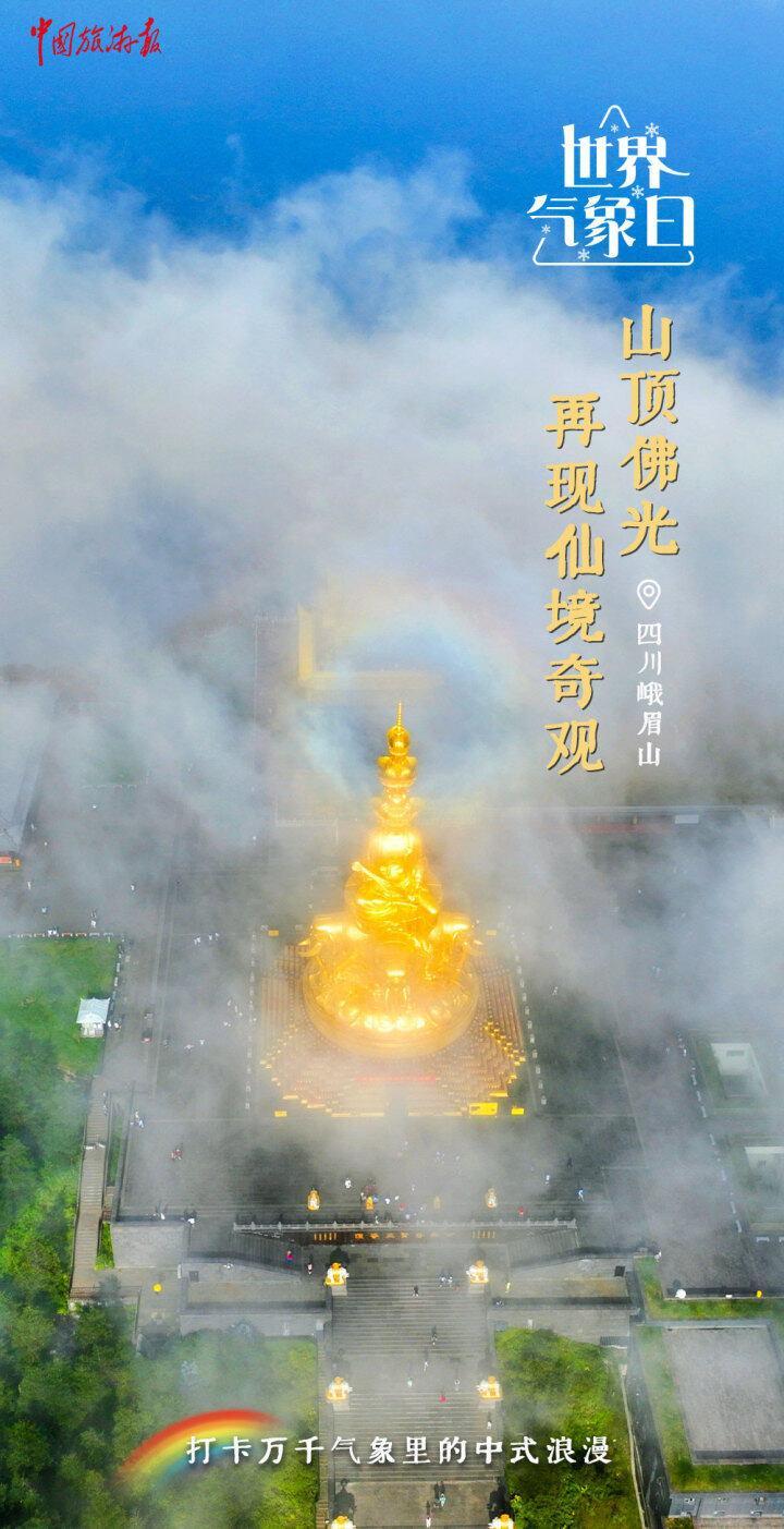 打卡特色:陽光穿過雲霧,經衍射等作用有可能形成圓圈狀的彩虹。這一奇觀被稱爲“峨眉佛光”,其最佳觀賞點在峨眉山金頂、捨身崖、雷洞坪等地。