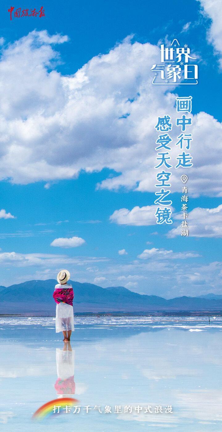打卡特色:茶卡鹽湖遼闊空曠,在水量充足、天氣晴朗時,能夠形成“水映天、天接地,人在湖間走,宛如畫中游”的景觀。