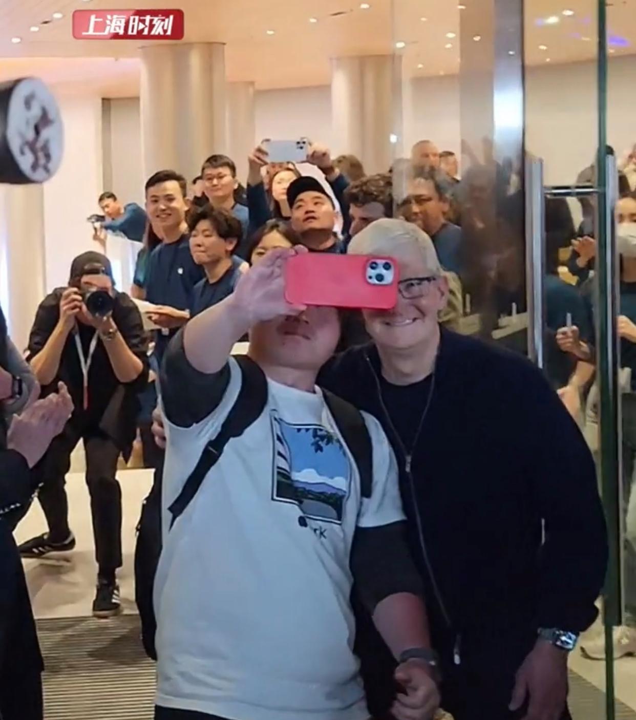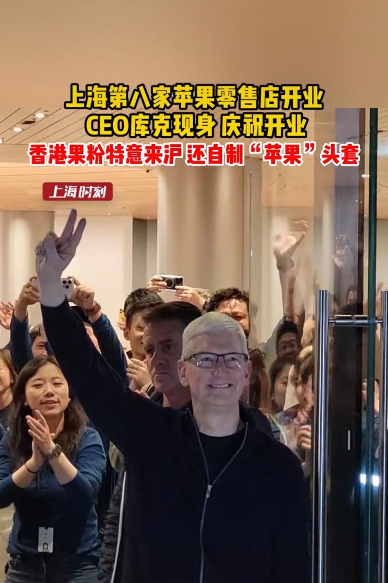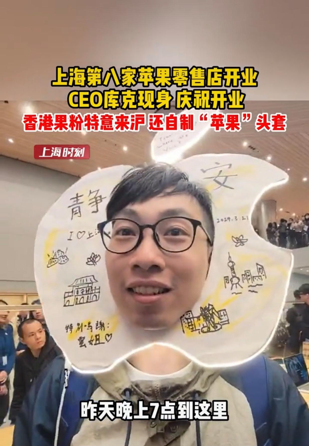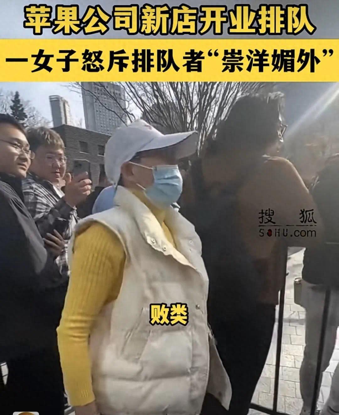 上海靜安區亞洲第一大蘋果專賣店開業,女子排不上對怒斥羣衆