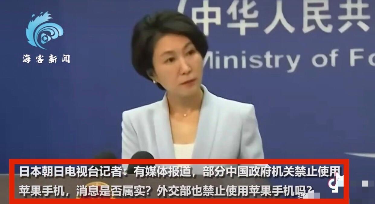 2023年官方報道,有一則新聞,外交部發言人毛寧回答記者問,他說中國官方並沒有出臺禁止使用蘋果手機和禁止購買蘋果手機的法律法規和政策一說,中國歡迎世界各國優秀手機企業到中國發展,希望企業遵守中國數據安全規則,保護好公民的隱私和數據安全,希望外國企業珍惜中國的發展機遇,共享中國經濟發展成果。