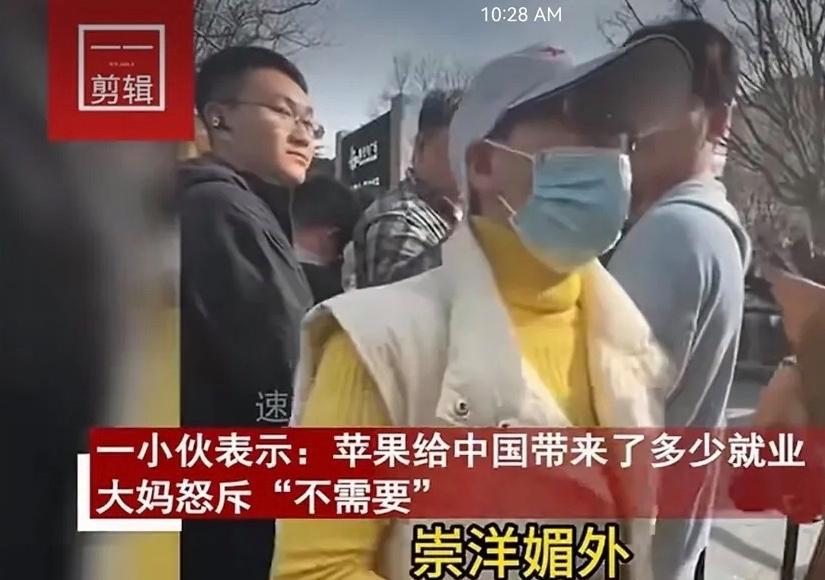 上海靜安蘋果新店開業,迎來了人山人海的果粉,令大家沒有想到令人咋舌一幕出現了,一位大媽跑到人羣中怒斥大家,買蘋果手機就是崇洋媚外。