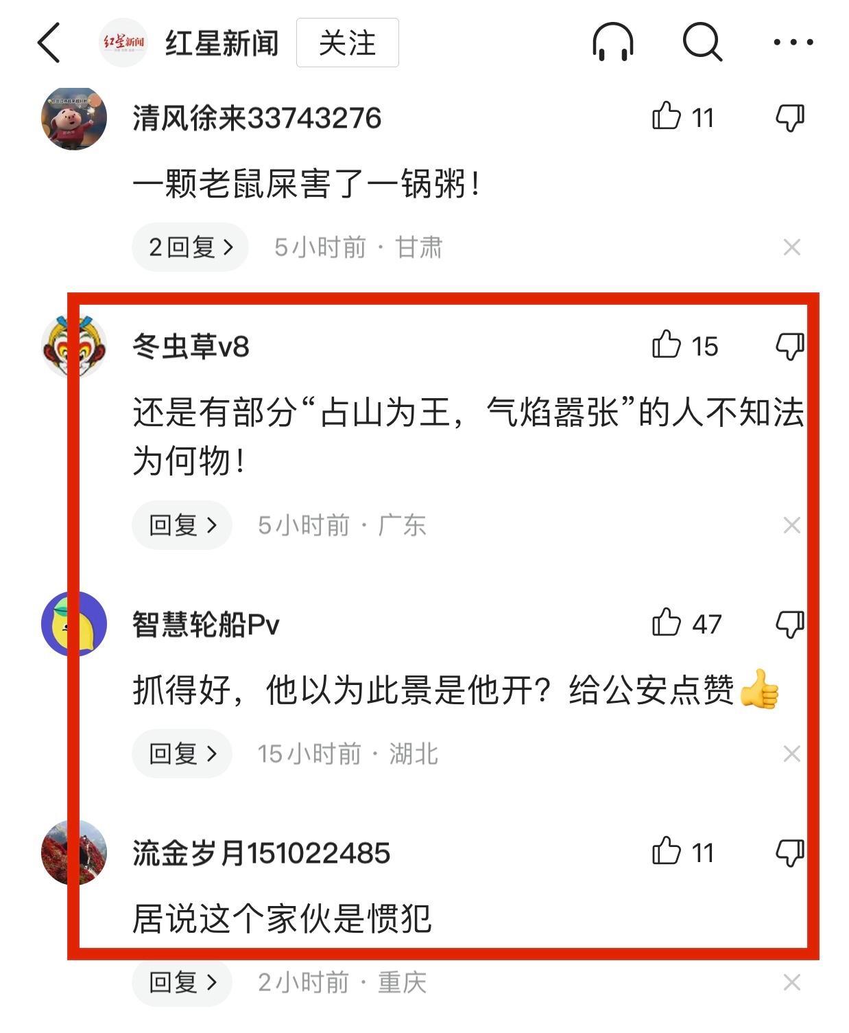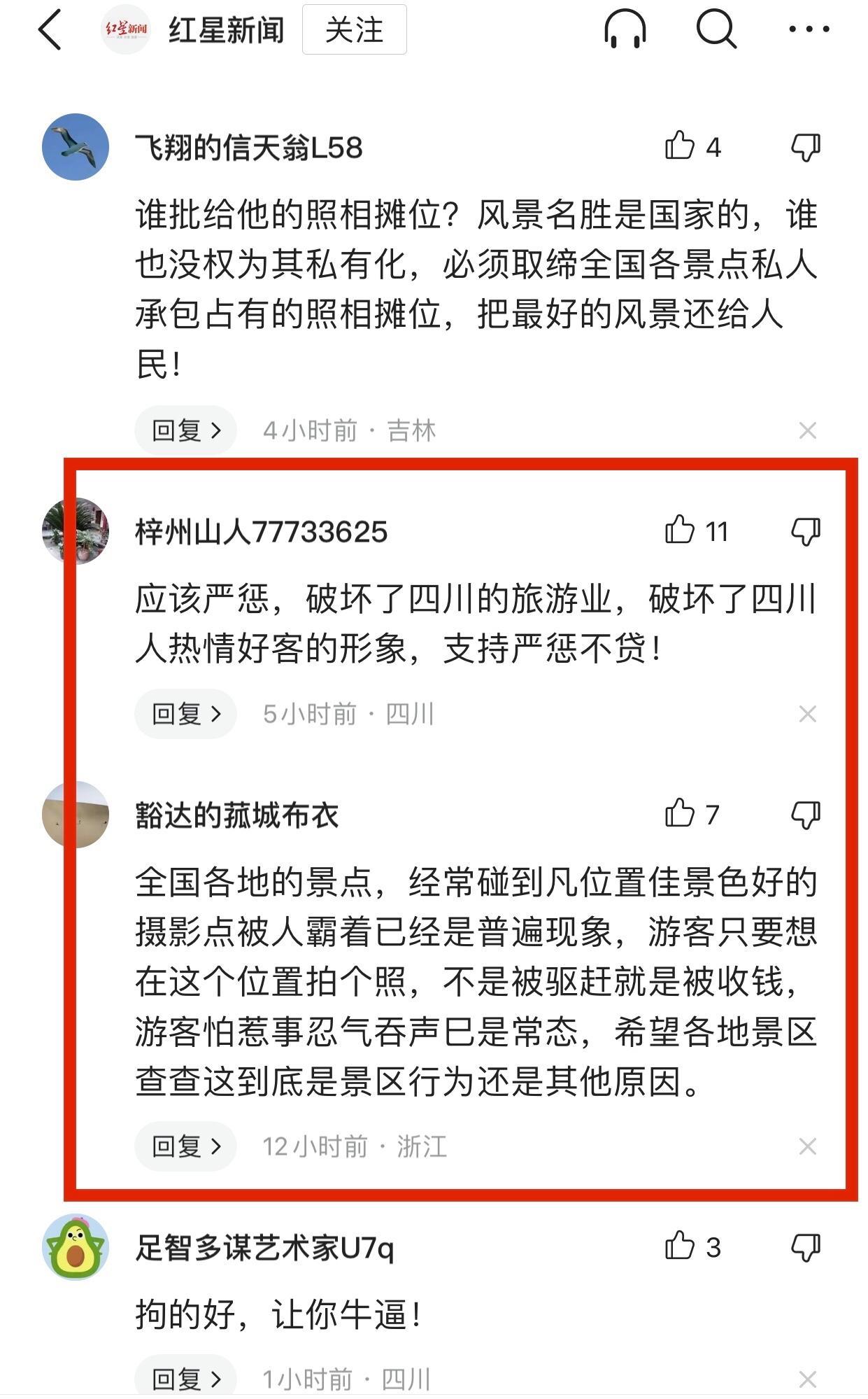 5、全國各地的景點,經常碰到凡位置佳景色好的攝影點被人霸着已經是普遍現象,遊客只要想在這個位置拍個照,不是被驅趕就是被收錢,遊客怕惹事忍氣吞聲巳是常態,希望各地景區查查這到底是景區行爲還是其他原因。