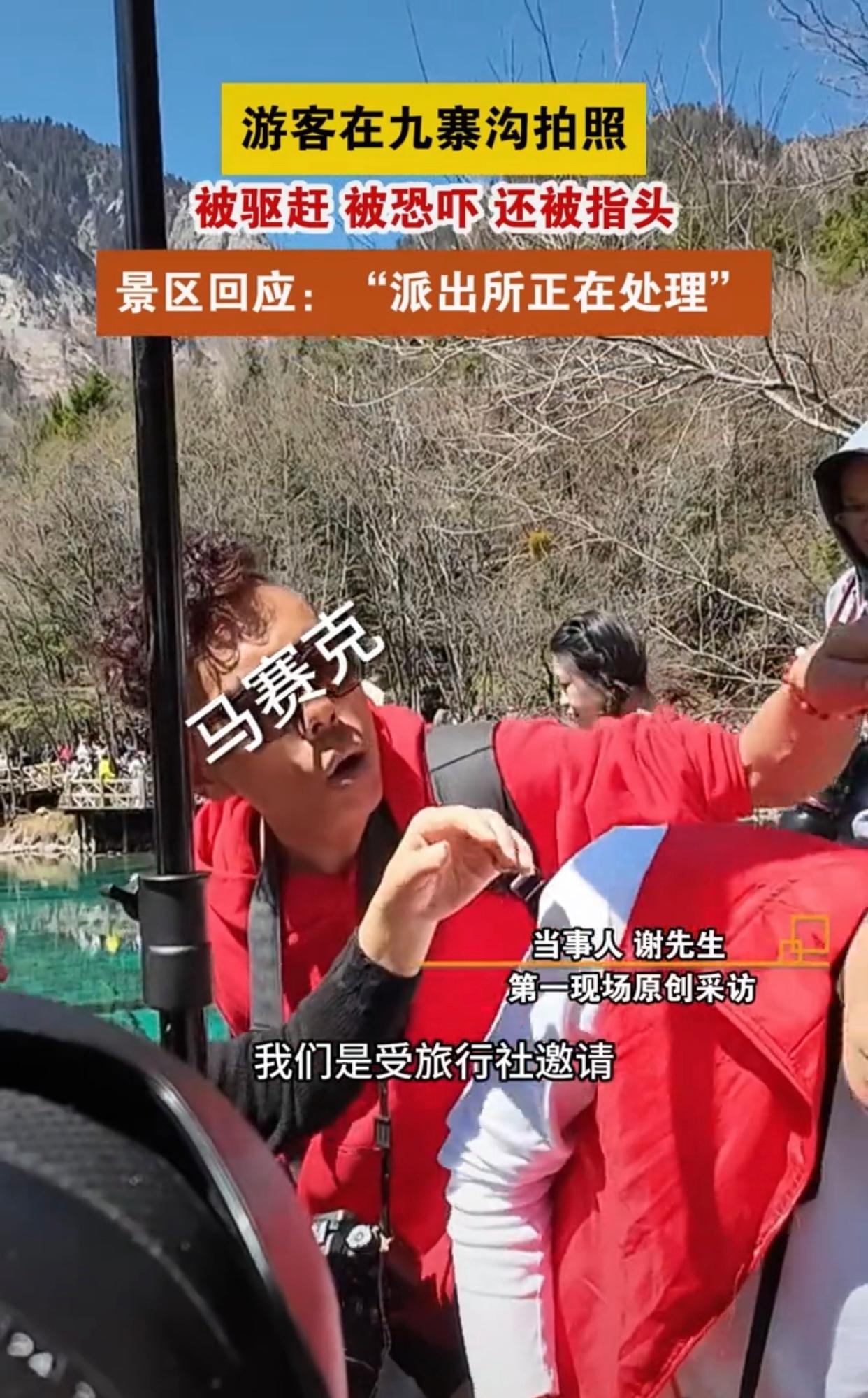 景區工作人員回應說,那名男子是九寨溝里居民,不是景區工作人員,這位本地居民在景區開展攝影和租衣服爲生意,可能是他覺得別人搶了他的生意,他壟斷地盤,發生這樣事情很抱歉,景區是不允許這樣行爲的,是允許遊客拍照的,景區當天就報警了。