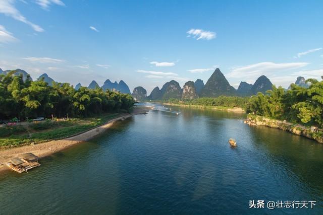 最後來到了十里畫廊,這裏真的是一步一景,如果想要更好的遊玩十里畫廊的話,建議租一輛電動車騎行,這樣子可以邊騎邊欣賞風景,遇到美景可以隨時停下來拍照打卡,而且還能走一些小路。十里畫廊的景點也很大,裏面包括有很多小衆景區,比如大家耳熟能詳的大榕樹景區,月亮山景區,遇龍河景區等,其中最讓遊客嚮往的還是遇龍河景區。這裏也是很多遊客來陽朔的主要目的之一,遇龍河景區可以乘坐竹筏遊覽兩岸的美景,兩岸的美景隨波逐流而下不斷的變化,讓遊客盡收眼底,真的是妙不可言!很多遊客都會有那麼一瞬間覺得:舟在碧波行,人在畫中游!