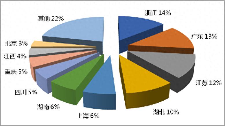 第四季度旅行社國內旅遊組織人次排名前十位的地區由高到低依次爲浙江、廣東、江蘇、湖北、上海、湖南、四川、重慶、江西、北京。(見圖1)