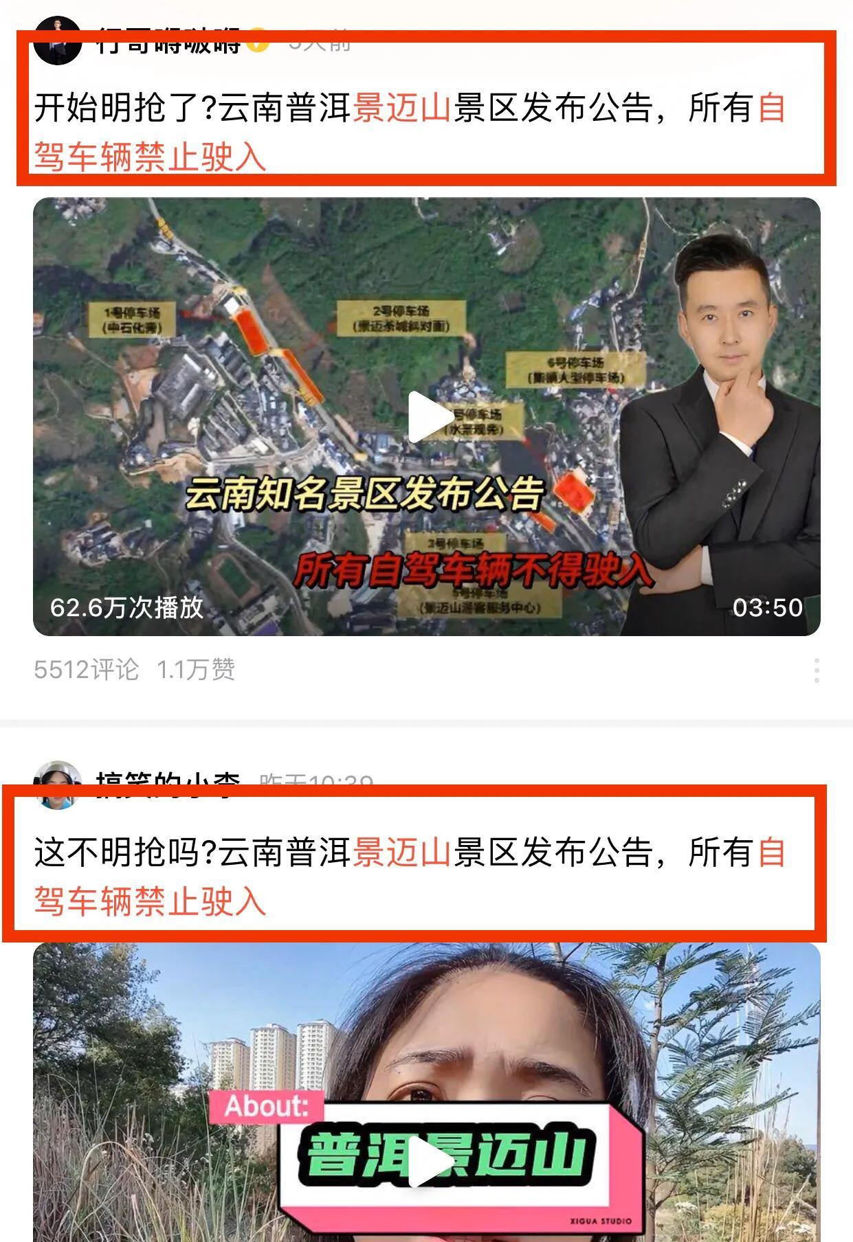 然而面對如此大遊客流量,給2024年旅遊創下了一個開門紅。景邁山茶園開發公司眼紅了,2024年3月18日,景區管理公司一拍腦門,就一紙公文要禁止自駕遊車輛進入景區,所有遊客私家車輛不得入內,全部停在惠民鎮遊客中心,遊客買票進入,每人120元景區大巴車,公告從3月28日凌晨開始執行,公告一出就衝上熱搜,網絡輿論吵翻天,一些自媒體博主直接發文說是打着交通安去旗號明着搶錢。