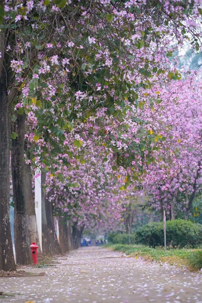 整條路兩旁全種滿了紫荊花的彎塘路,