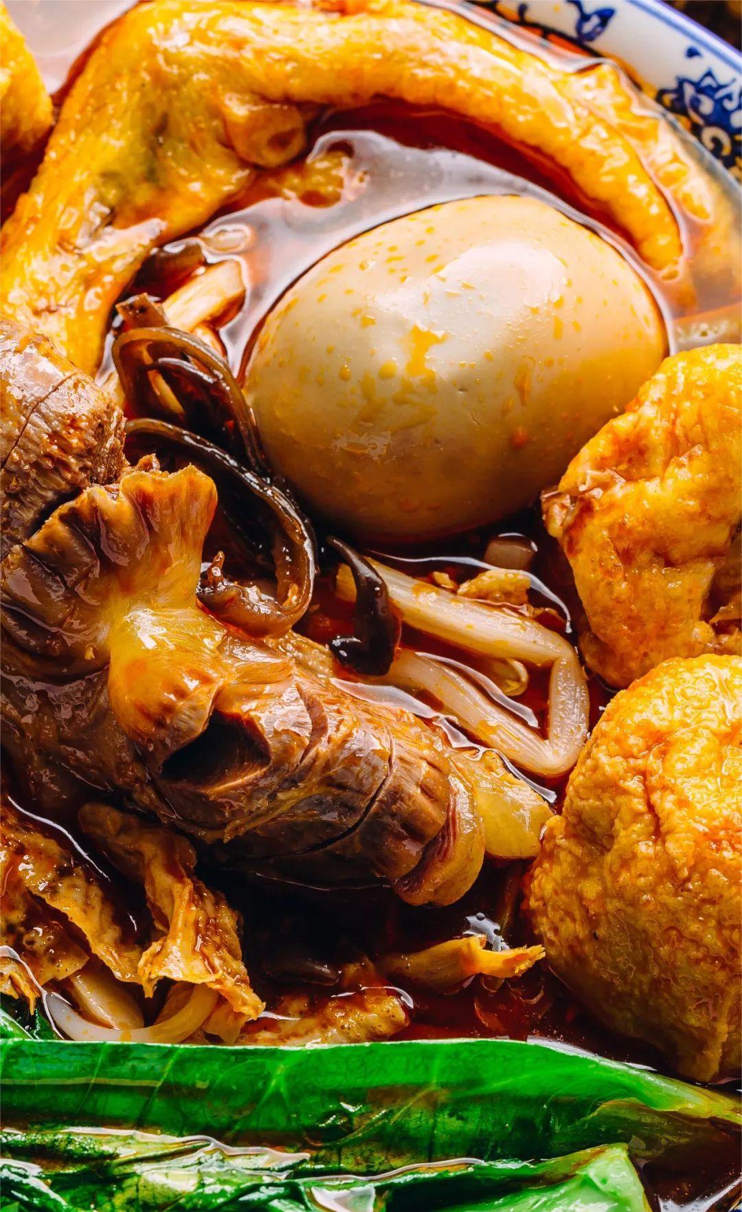 搭配上鮮豔的紅湯,香脆的腐竹,