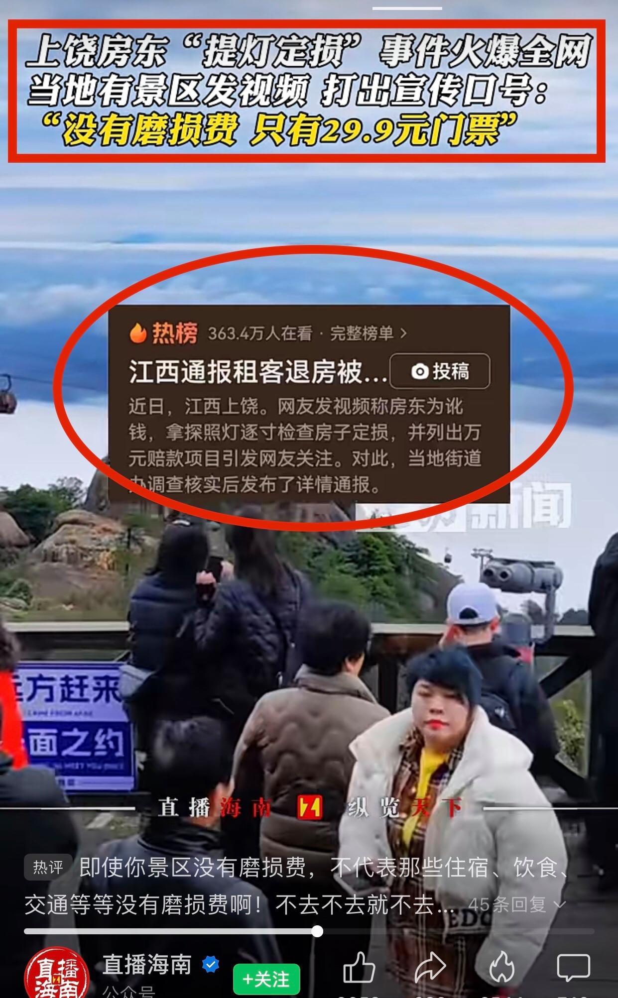5、江西房東一戰封神,現在全國人民外出旅遊,都需要先問景點門票有沒有磨損費。