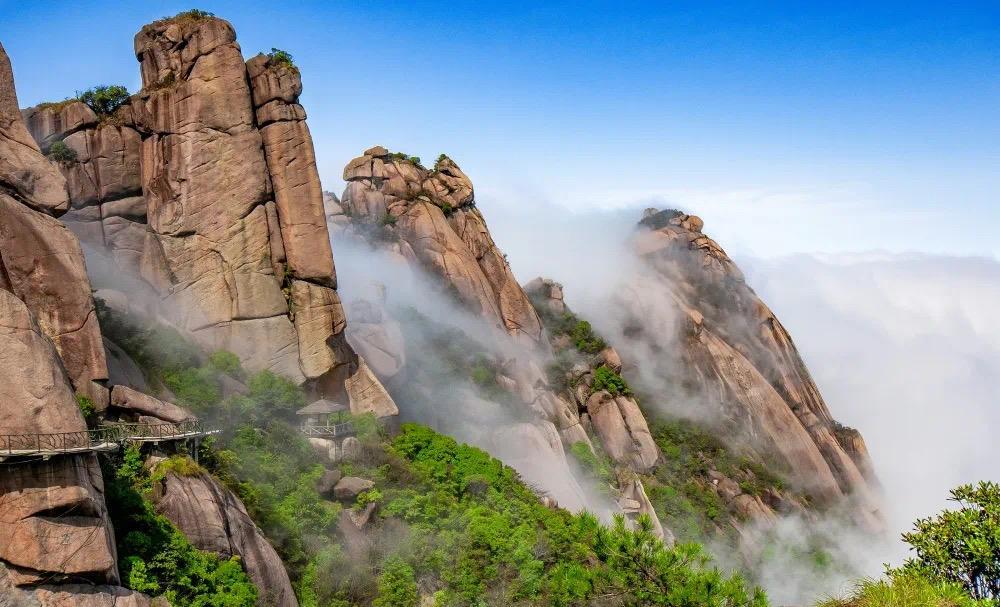 上饒靈山,被譽爲“中華大地上龍的脊樑”、“天下第三十三福地”、“江南睡美人”,各種形態各異的奇石在雲霧繚繞中仿若仙境。